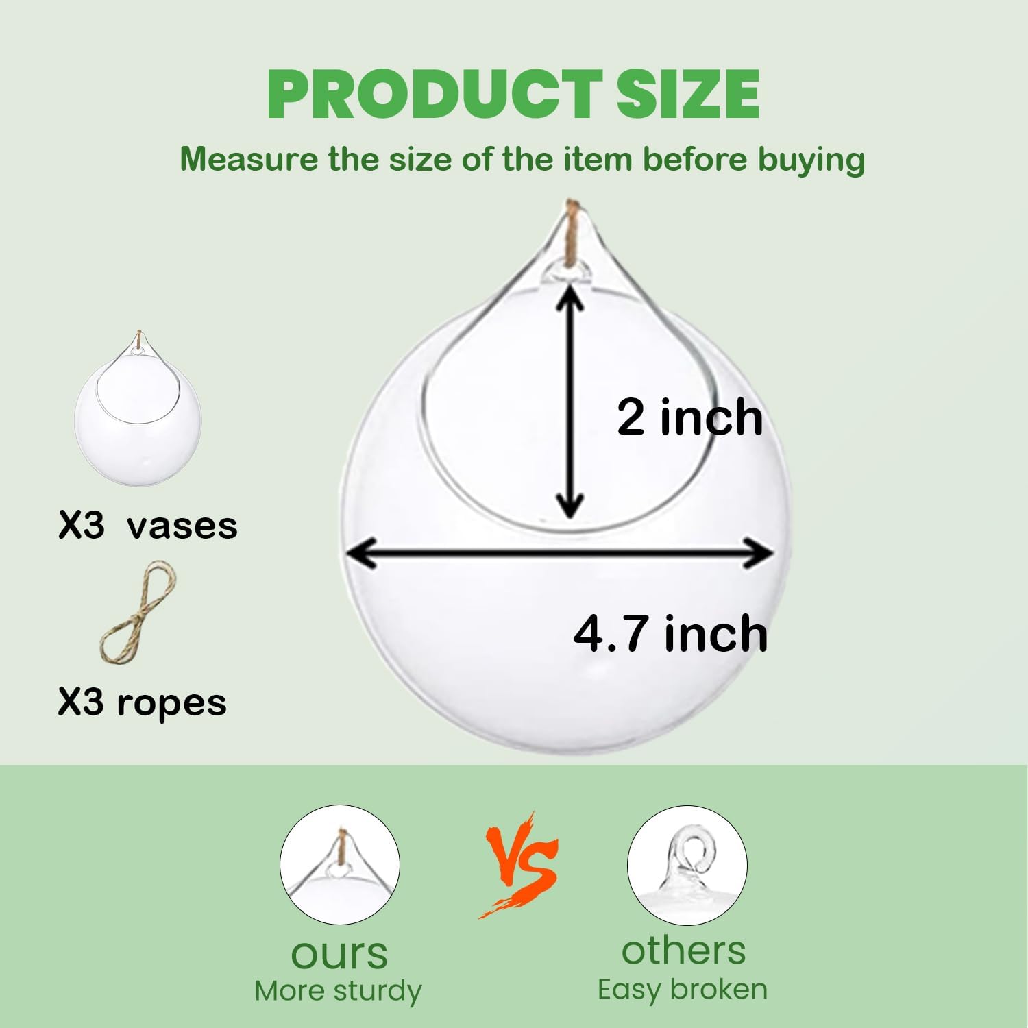 Ivolador Hanging Planter Glass Terrarium Container Air Plant Holder Succulents Globe Shape Home Garden Decor-4.7 Inches-3PCS