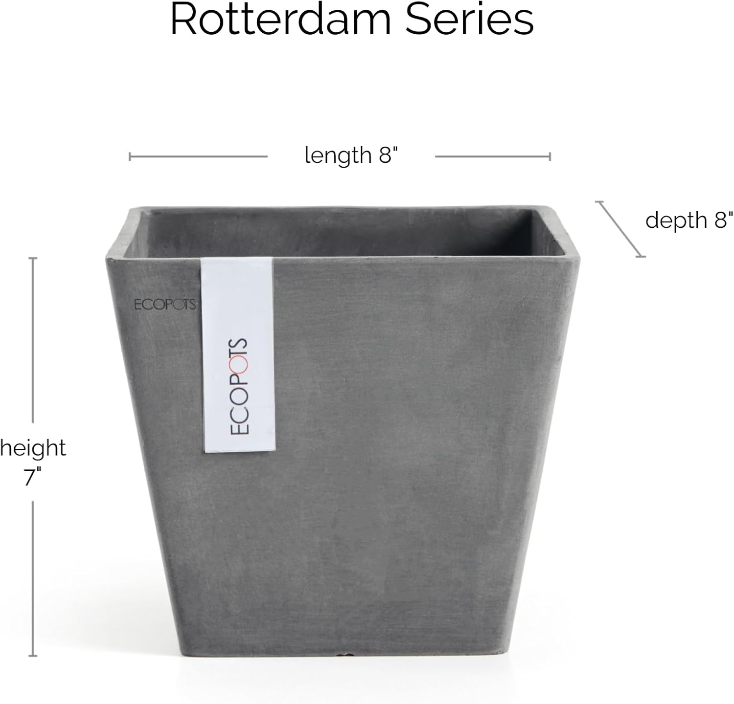 Ecopots Rotterdam Durable Modern Square Indoor/Outdoor Recycled-Based Composite Flower Planter, Grey, 8"