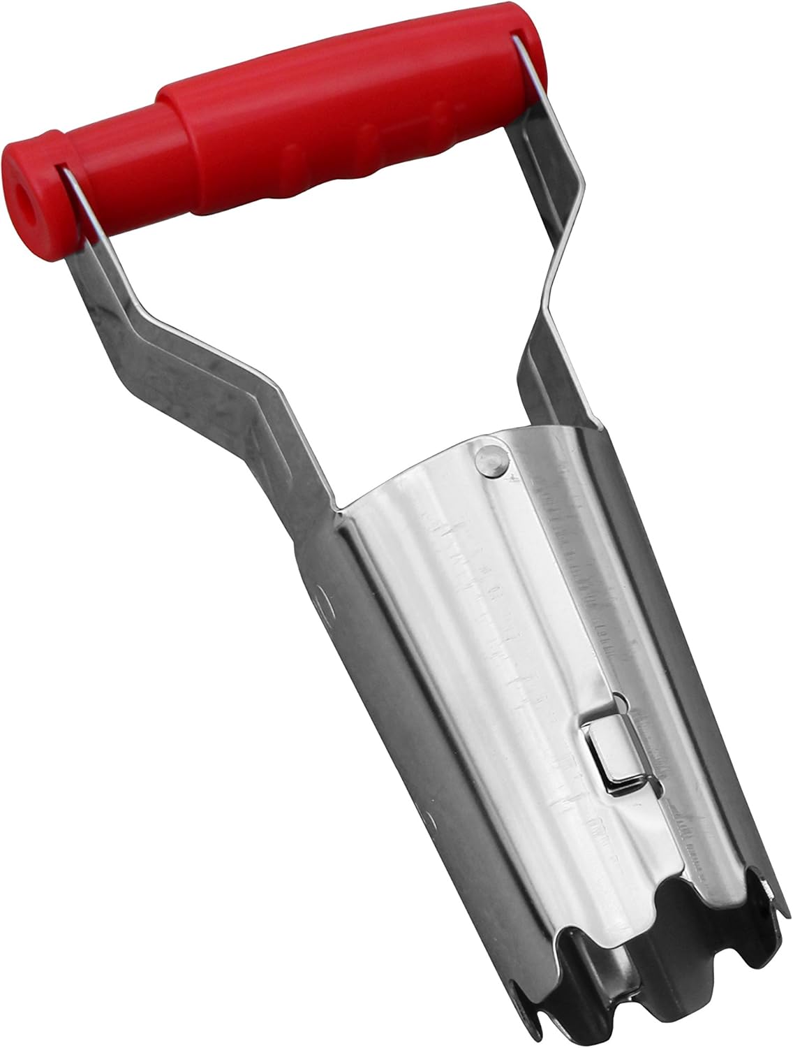 - 3. BULB PLANTING TOOL. This is a great tulip, daffodil, lily and dahlia bulb planter. The spring-loaded handle has an automatic soil release mechanism, which allows for quicker planting. The reinforced steel prevents bending in heavier soils. The bulb planting tool includes depth marker for more consistent planting. Planter measures approximately 9" tall with a 5" wide handle and 2.5" diameter base.