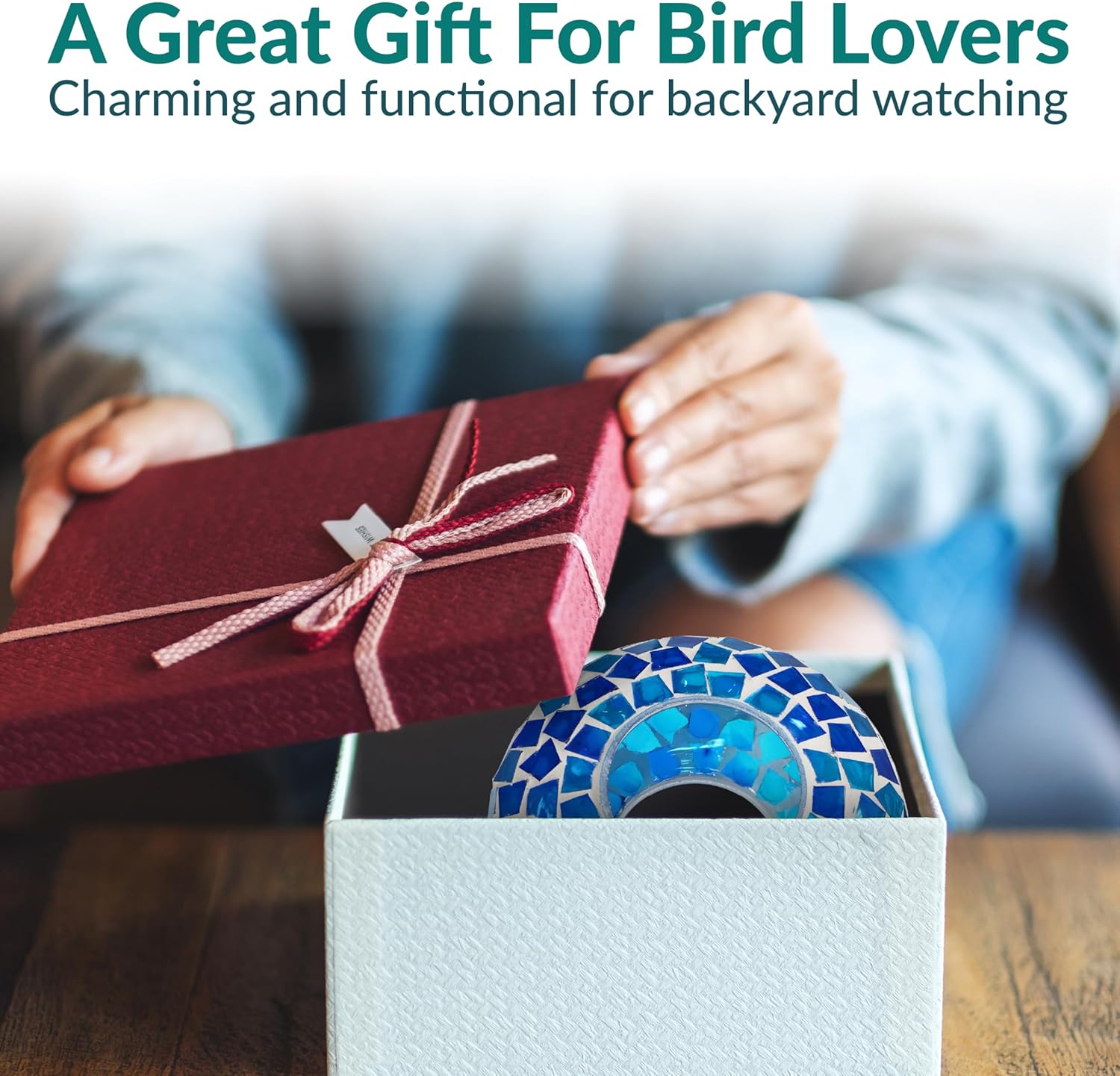 - ATTRACT BIRDS TO THE YARD: This cute bird feeder features vibrant colors and a mosaic glass construction that is sure to appeal to humans and birds alike. The bright colors and reflective material will help attract a variety of bird species to the feeder including cardinals, finches, sparrows, and more. Plus, it will add a stylish pop of color to any patio decor. The open fly-through design also makes it easier for birds to access the seed, encouraging them to come back again and again.