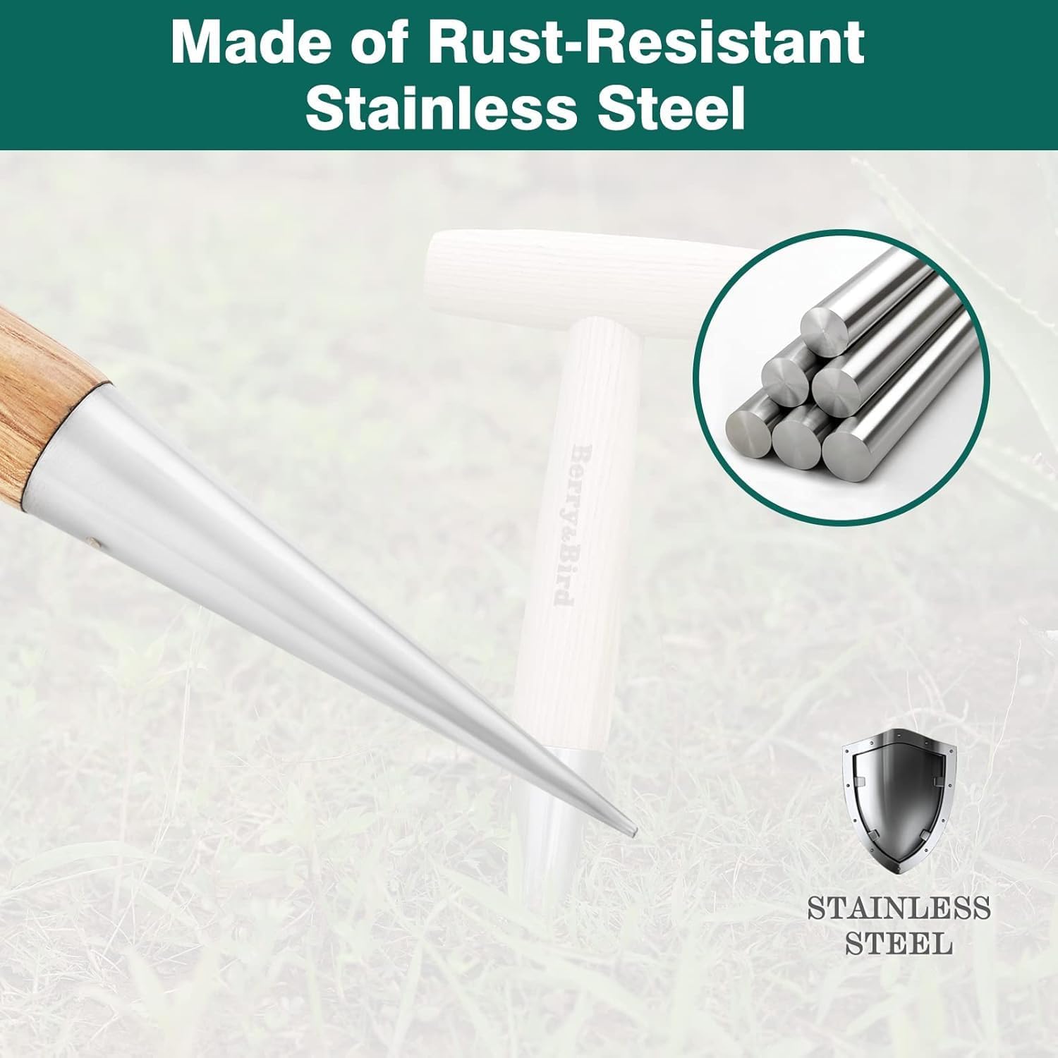 Berry&Bird Hand Dibber, Stainless Steel Sow Dibbler with Wood Handle, Garden Hole Punch Dibbler Tool for Planting Seeds & Bulbs, Hand Held Bulb Planter for Planting Flowers Tulips, Daffodils, Dahlias