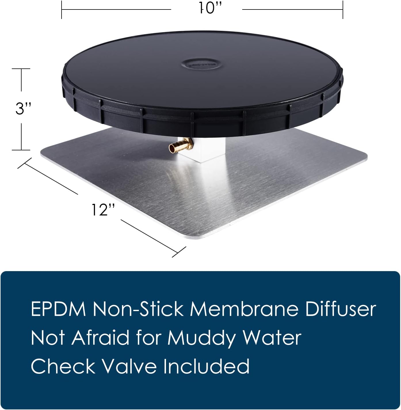 - EPDM non-stick 10β membrane diffuser. 12β square stainless steel base for the diffuserβs stability.