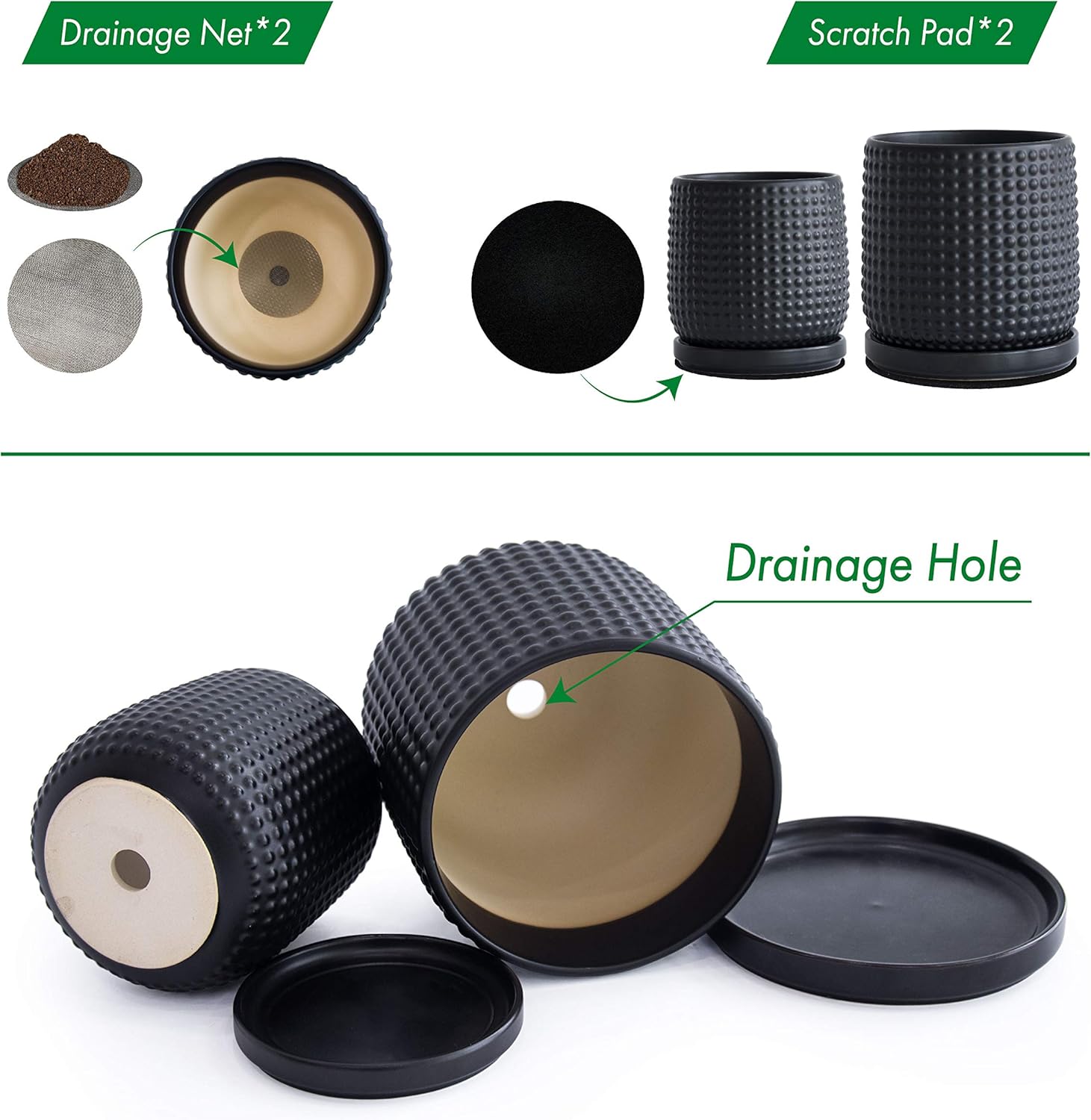 - Drainage Hole & Matching Saucer: Each pot comes with pre-drilled drainage hole and perfectly matching ceramic design tray for small amount of excessive water drain.