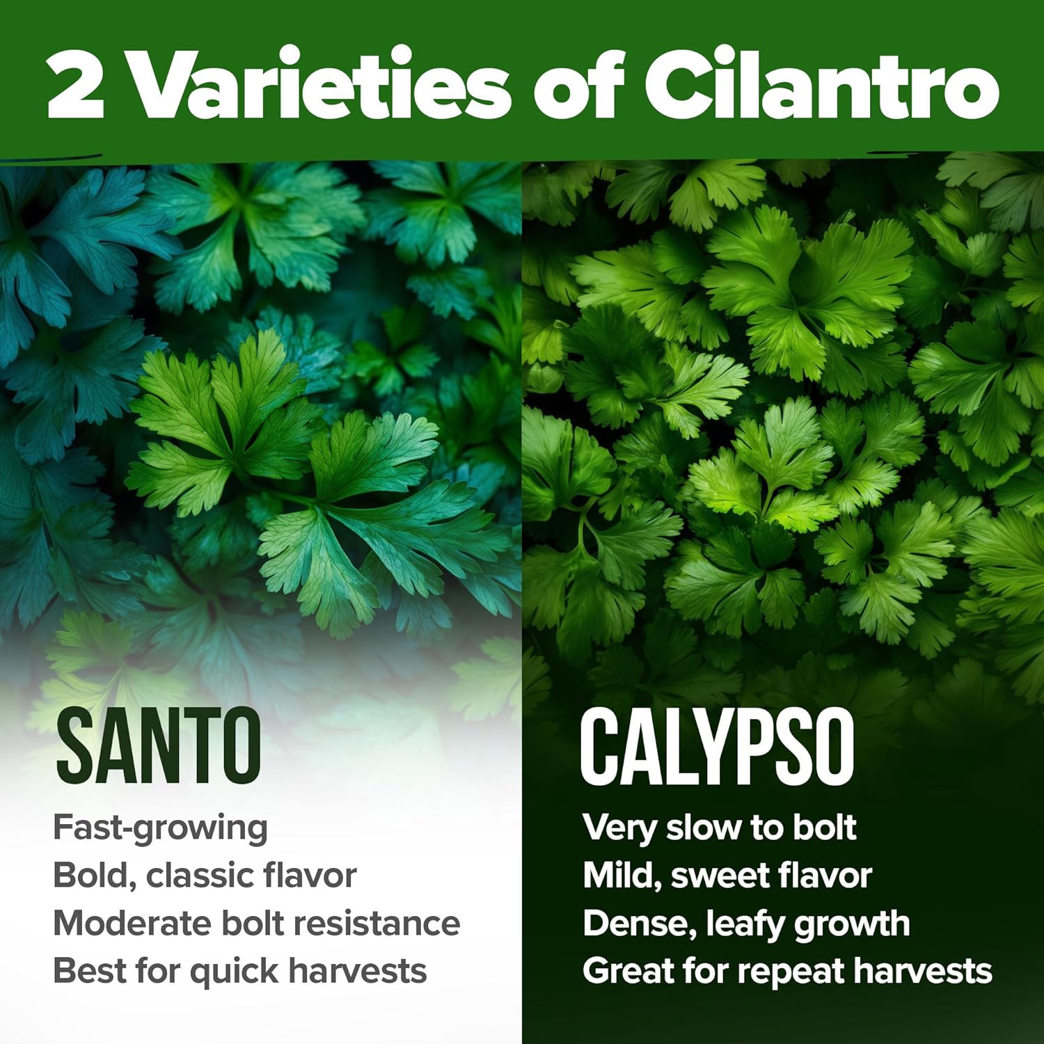 HOME GROWN Cilantro Seeds 250 Calypso & 250 Santo Cilantro for Planting Indoors, Hydroponics or Aerogarden - Heirloom, Non-GMO, Santo Plant, for Your Indoor Herb Garden