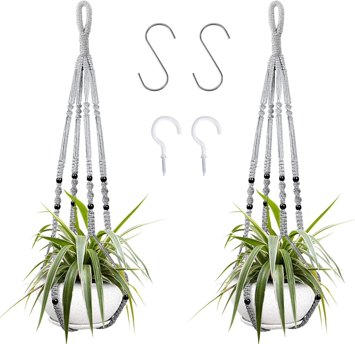 - PACKAGE INCLUDES - 2 pcs plant holders with wood beads decorative, 4 pcs hooks, convenient for you to hang plants on a variety of occasions,Meet your indoor and outdoor decoration needs