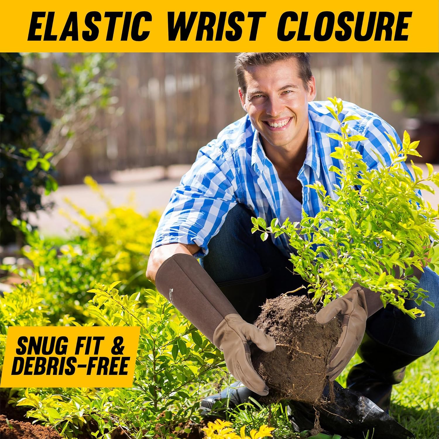 HANDLANDY Long Gardening Gloves for Men & Women, Cowhide Leather Rose Pruning Gloves- Breathable & Durable Gauntlet Glove (Small, Brown)