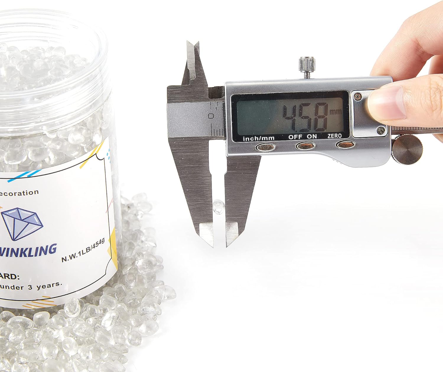 TWINKLING High Luster Round Fire Glass Stones,Glass Marbles Pebbles,Glass Beads Gems for Fire Pit Vase Fillers Crafts Aquarium Garden Decoration,3-6mm,1-Pound Jar (Crystal)