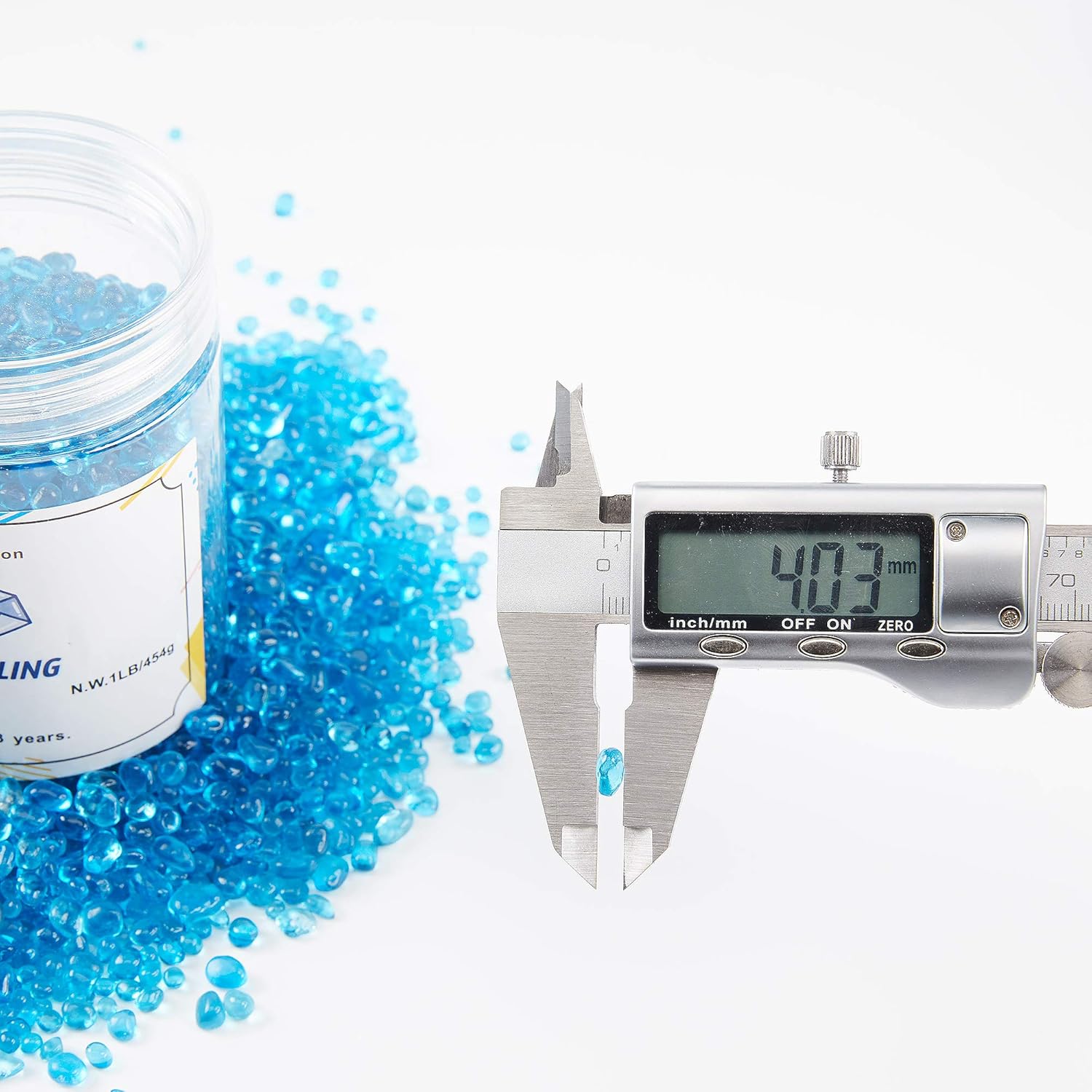 TWINKLING High Luster Round Fire Glass Stones,Glass Marbles Pebbles,Glass Beads Gems for Fire Pit Vase Fillers Crafts Aquarium Garden Decoration,3-6mm,1-Pound Jar (Ocean Blue)