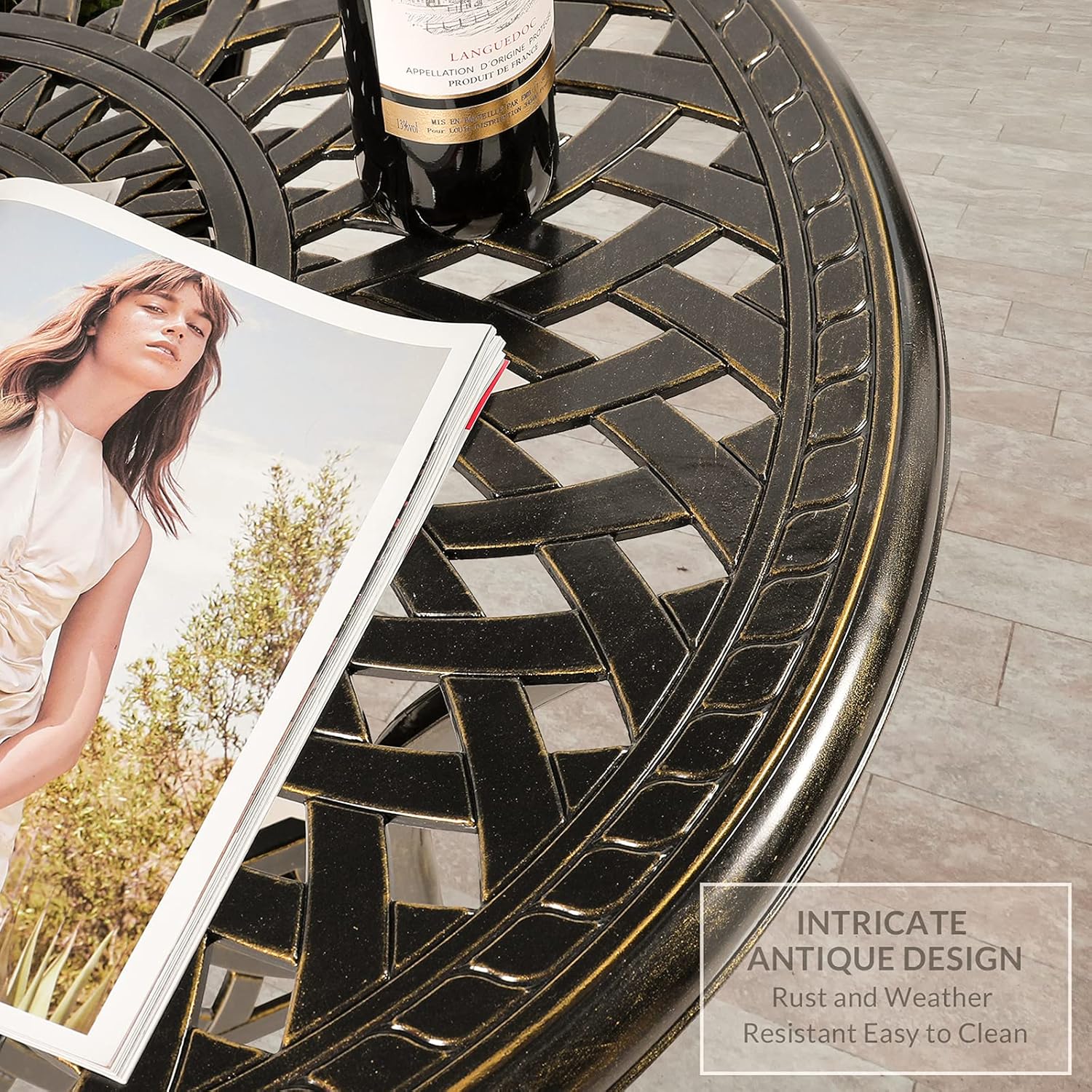 - 【STYLISH APPEARANCE】 - This 3-Piece Dining Set includes 2 stylish and comfortable chairs and 31" round cast table. Elegant cast accents scroll across the chairs and table top, adding a level of sophistication and craftsmanship to the collection. Perfect addition to your patio, yard, deck, or porch.