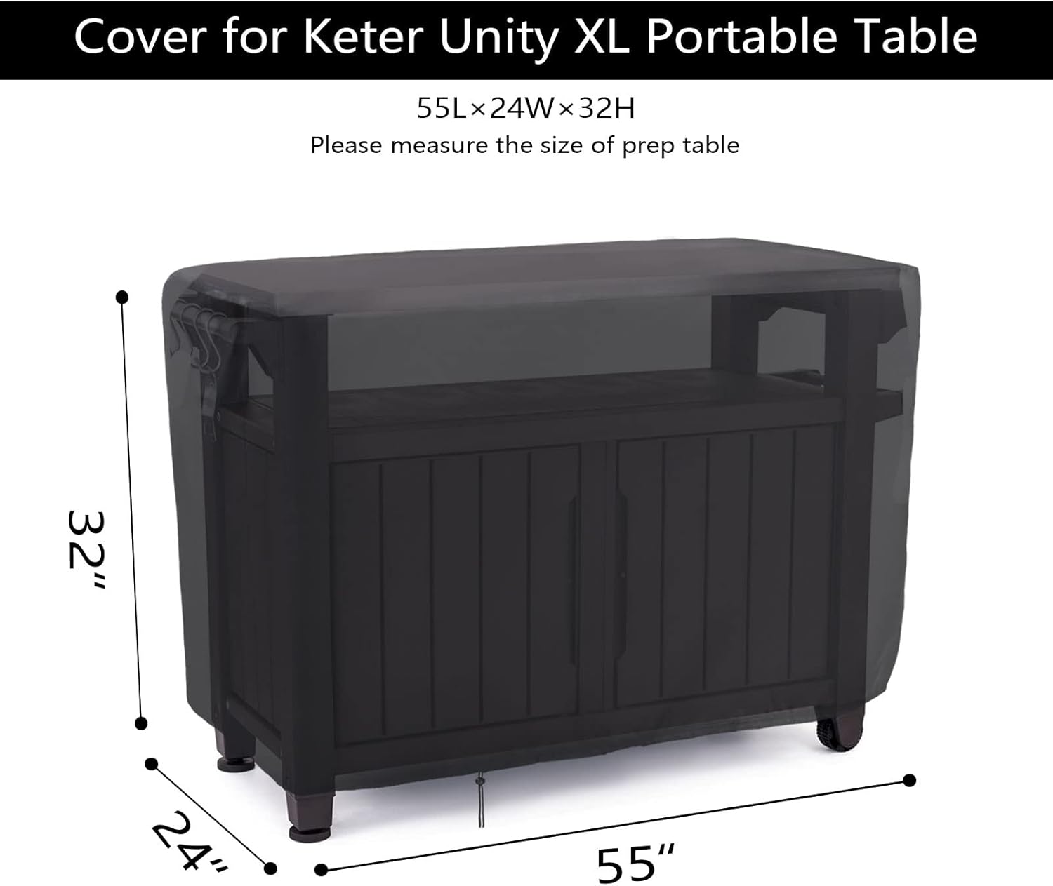 - Size: 55 x 24 x 32 inch, The furniture cover is very suitable for Keter Unity portable XL outdoor table, and can also be used with other types of furniture. Before buying, measure your size of the table or cart to ensure that it can be used.