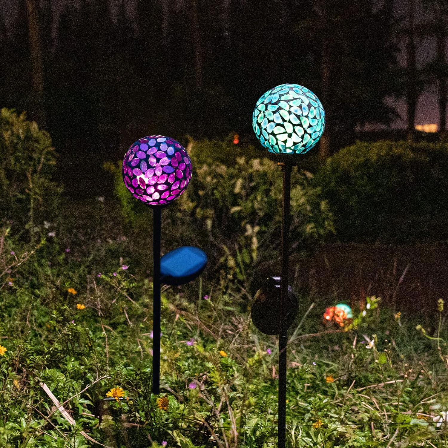 - Mosaic Globe Design:Mosaic solar garden lamp adopts hand-made color flower petal glass fragment design, solar ball light makes your garden more beautiful and elegant. Ideal choice of outdoor decorative lamp