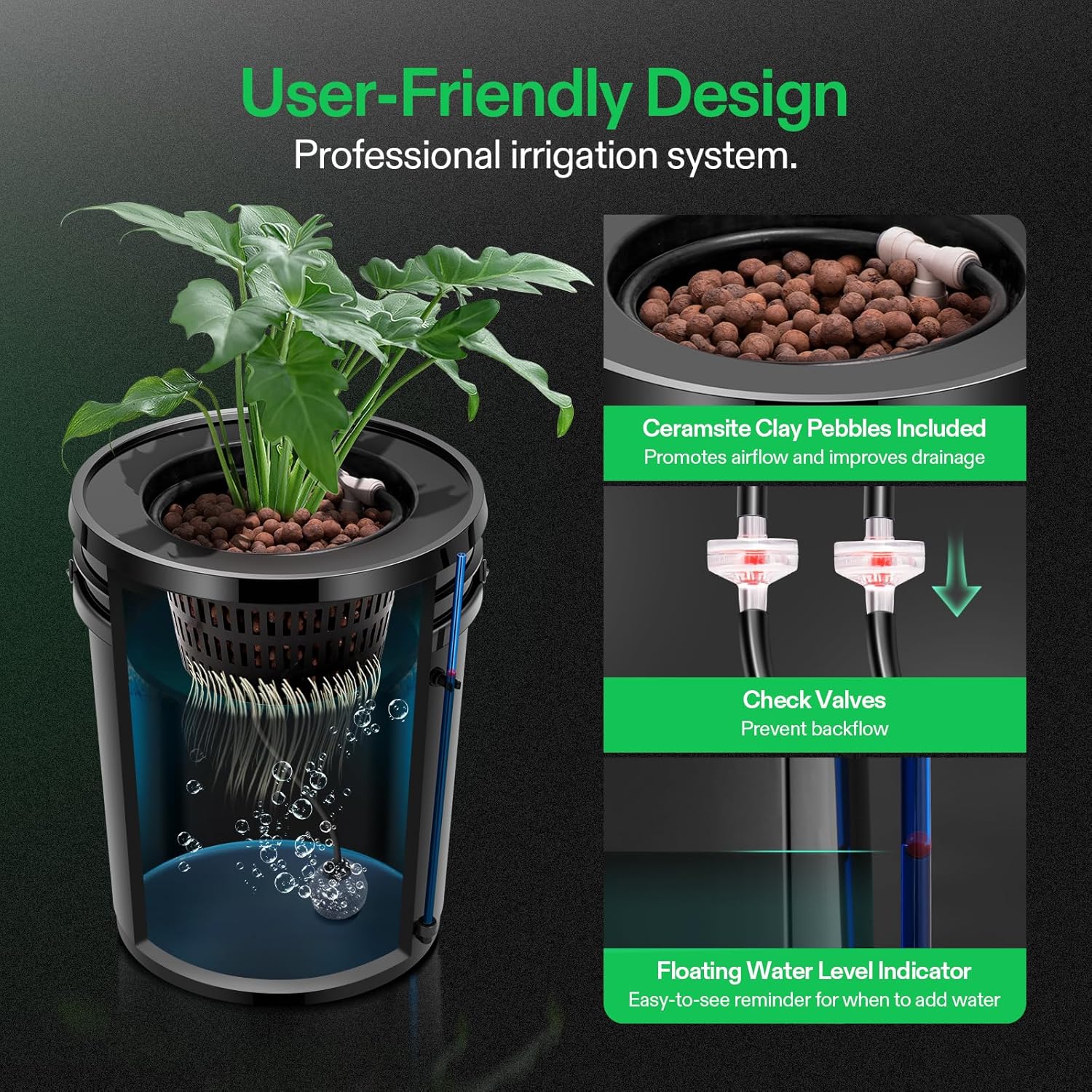 - DWC Bucket +Top Drip Kit: Upgraded DWC hydroponic planting system adopts an unique top drip irrigation design; It provides a water circulation to keep the nutrient water fresher and easier to be absorbed