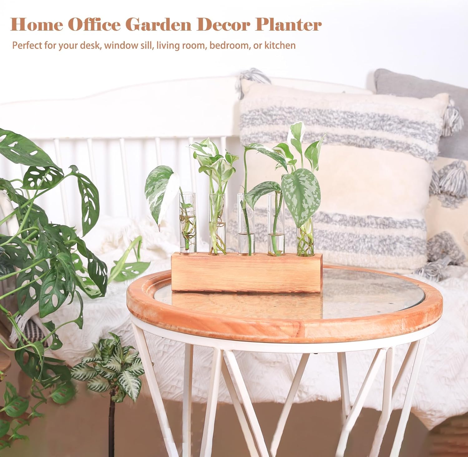 - Plant Propagation Station: Bring together vintage charm and gardening functionality, making them a beautiful addition to any home. Elegantly designed propagation vases ideal for indoor plant propagation and cuttings. We take pride in our propagation stations, which feature thicker glass tubes, a sturdy wooden base, and exquisite packaging to ensure they arrive in perfect condition. Propagation station Tubes fit seamlessly into any space—whether it’s your home, office, windowsill, desk, bookshelf, or even a coffee shop. You'll enjoy the process of watching your baby plants grow in these stylish and practical rooting vases