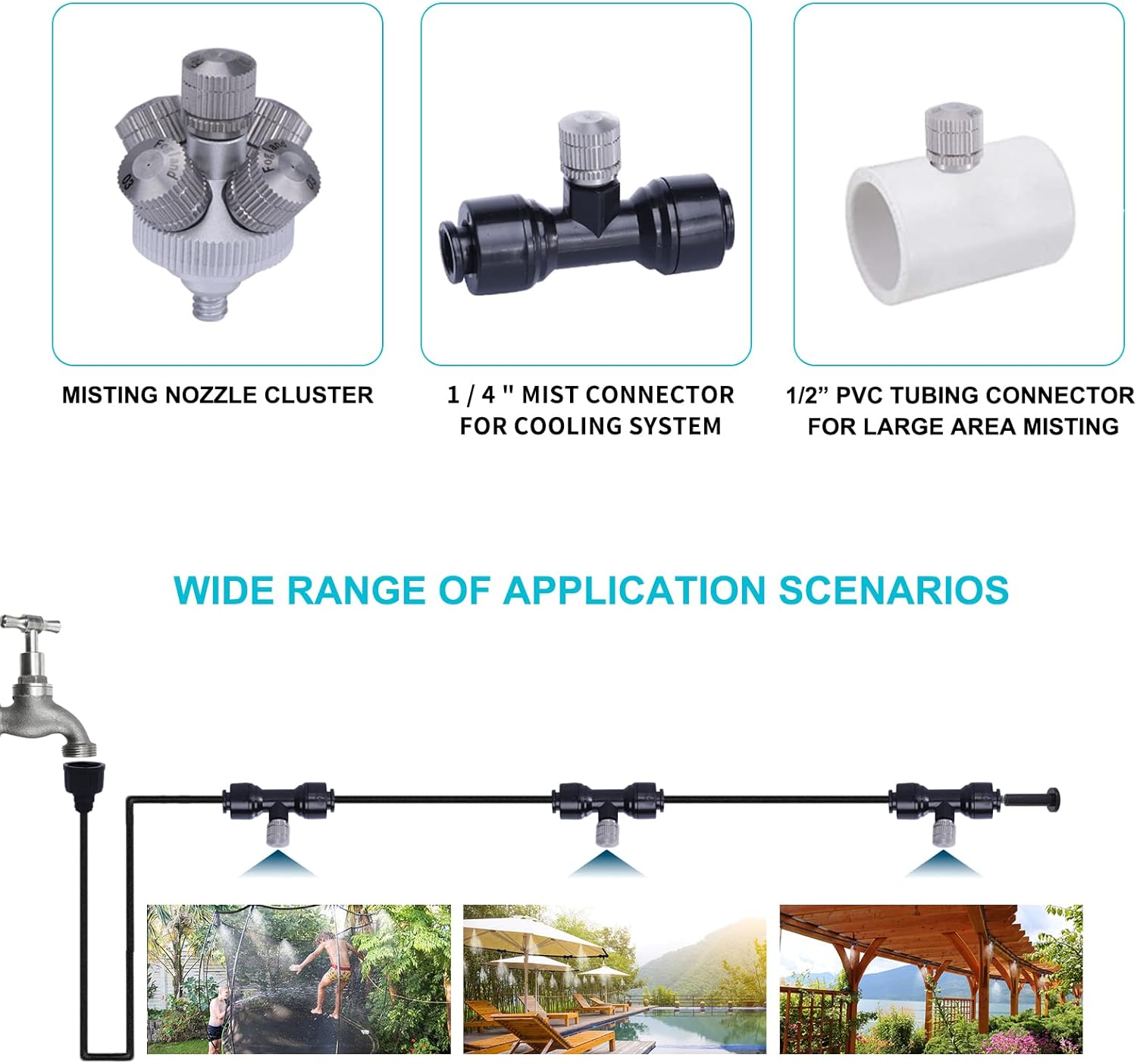 - [Newly upgraded mist effect]: Fogland newly upgraded mist nozzle can produce water mist with a larger flow rate and coverage distance. Atomized particles are fuller and the cooling capacity is enhanced, which can reduce the ambient temperature by 15°C or 60°F.