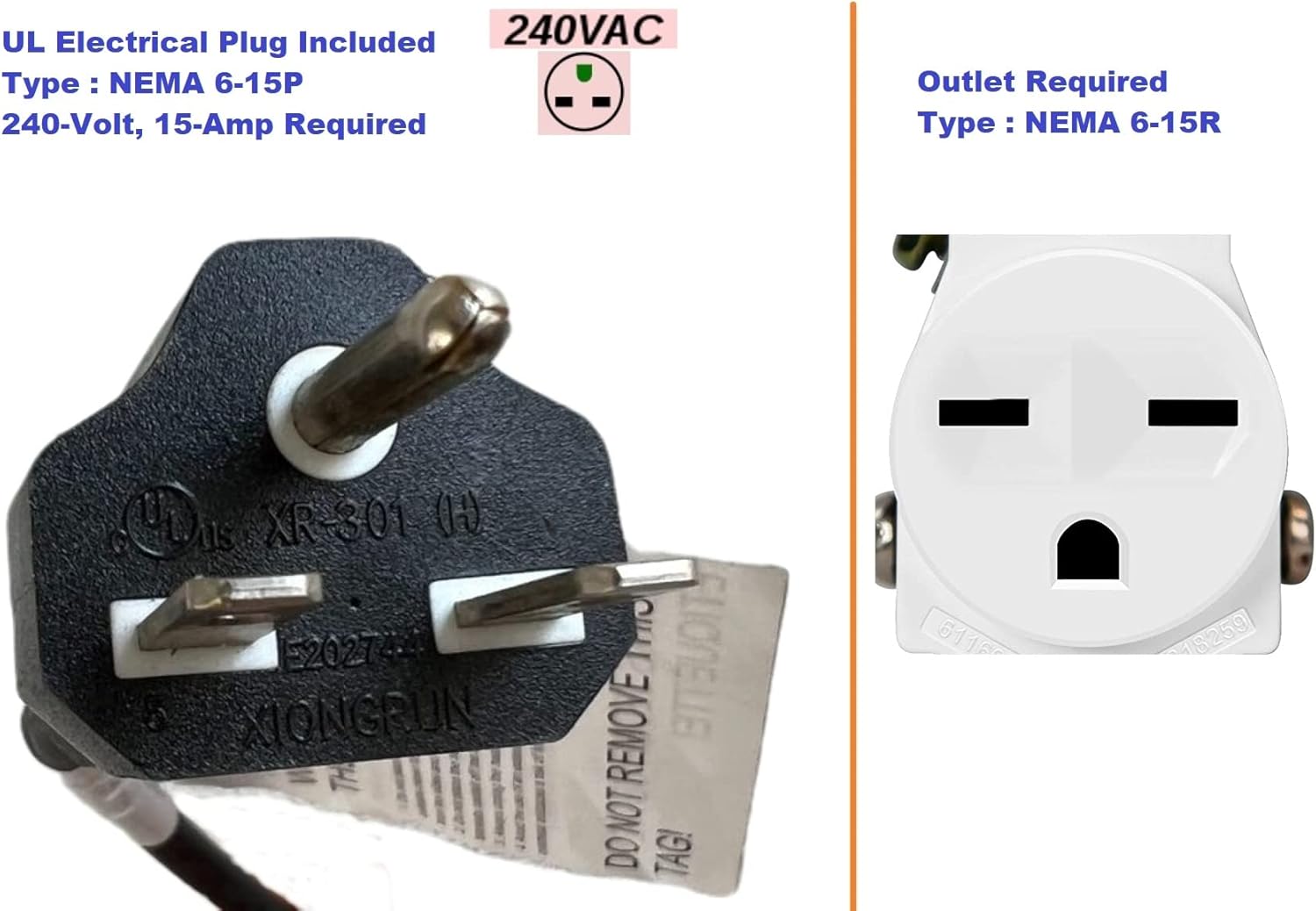 - SAFETY - The heater is equipped with self-recoverable overheating protection. Timely and safely shut off the heater. UL Electrical Plug Type: NEMA6-15P UL AC Plug 15A