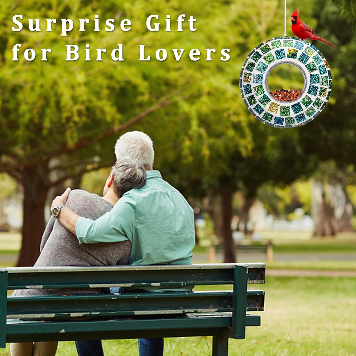 - Mosaic Bird Feeder: Has a colorful mosaic glass design which reflects beautiful lights in the sun and attracts birds to feed, making your home and garden more lively