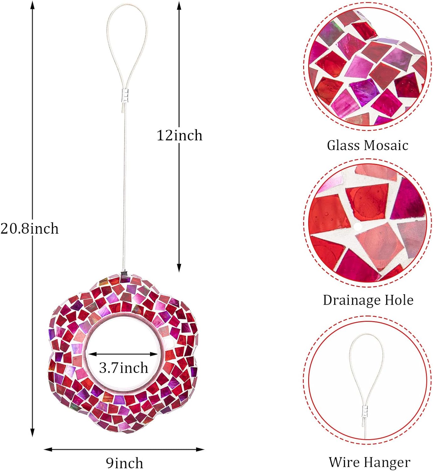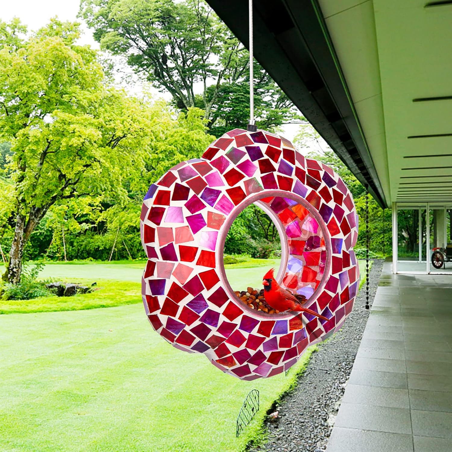 - 【Hanging Bird Feeder】Mosaic hang bird feeders for outdoors is made of strong mortar and glass. Birds can eat from the rim or hop inside during bad weather.