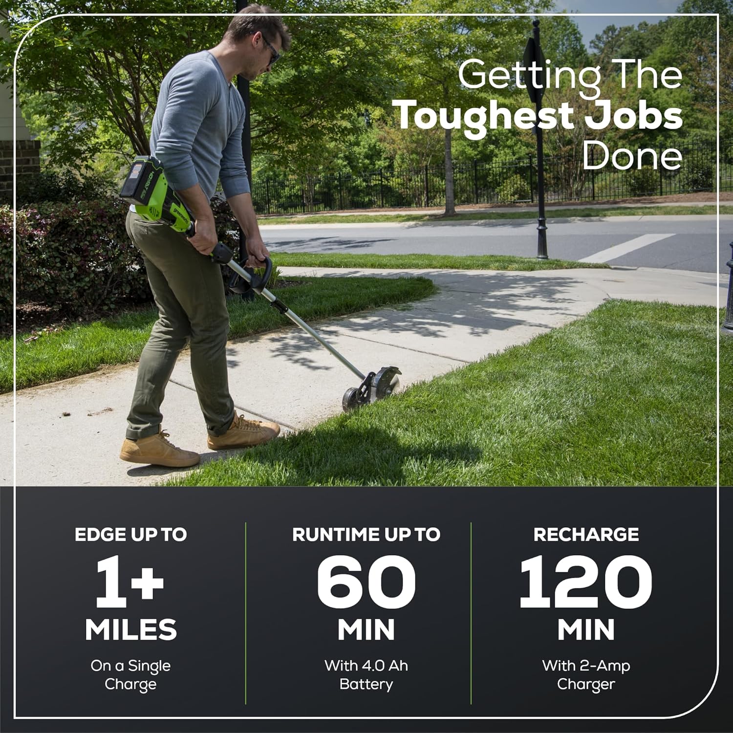 Greenworks 40V 8" Brushless Edger, 4.0Ah USB Battery and Charger Included