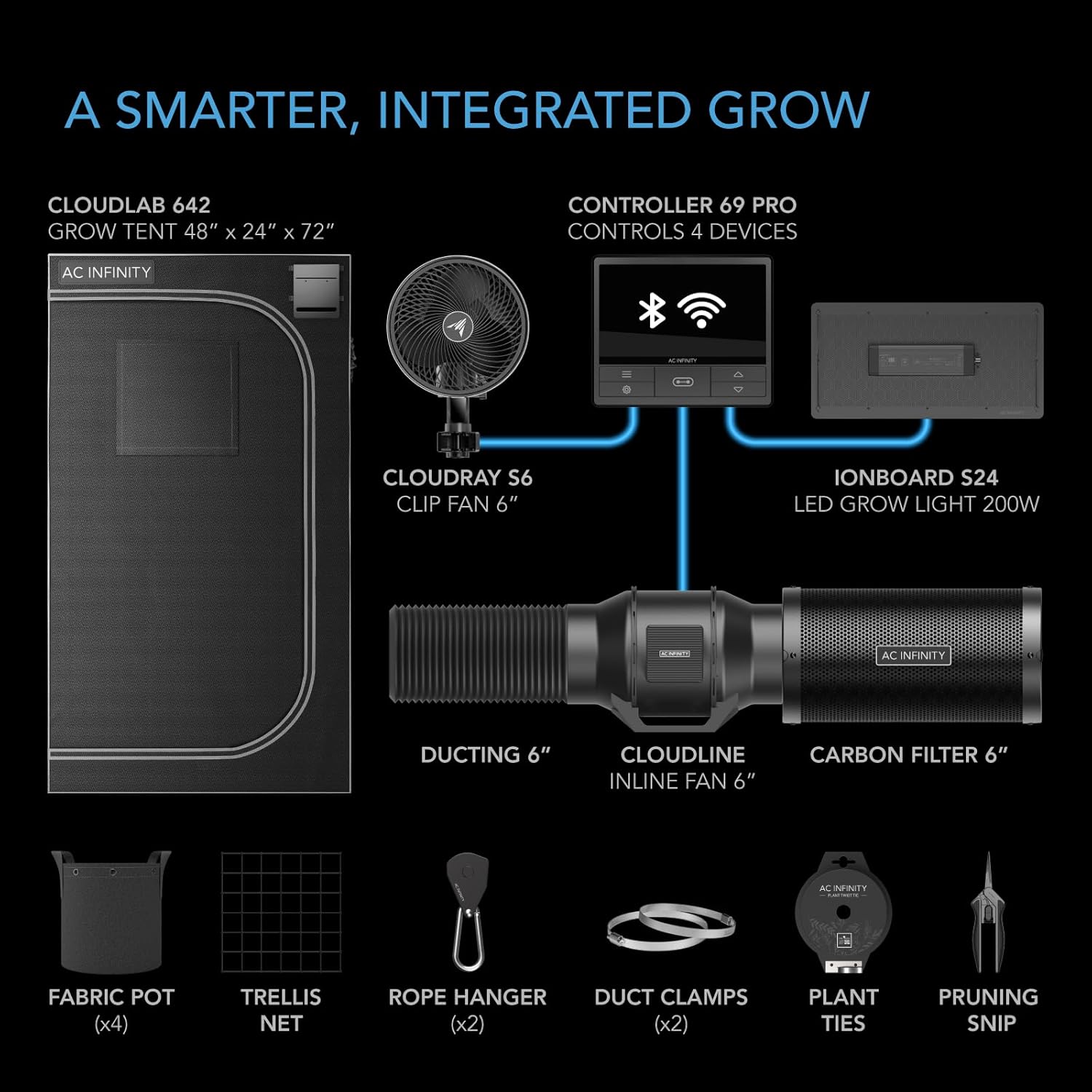 - An advance grow tent kit with smart controls and integrated components to start an indoor growing system.