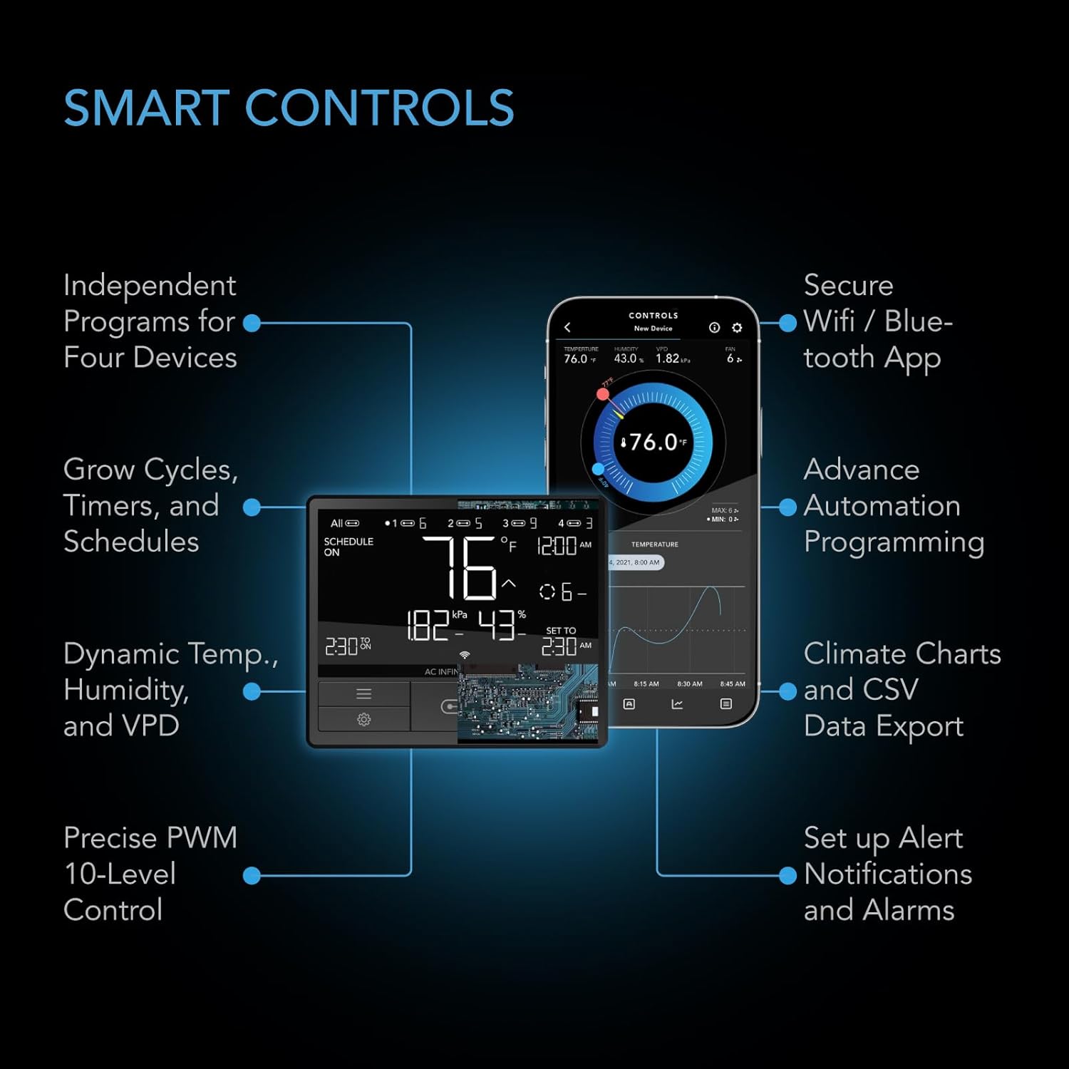- Connect your mobile device to our app via WiFi to automate and track your grow tent climate from anywhere.