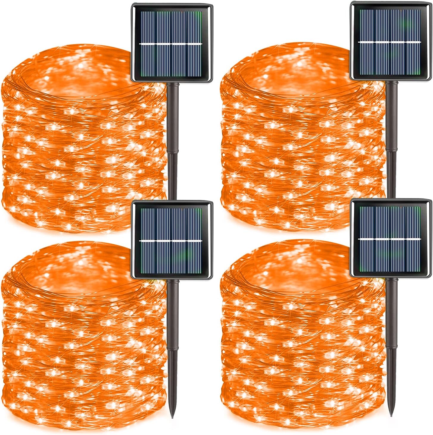 QITONG 4 Pack Orange Solar Fairy Lights, Each 33ft 100 LED Halloween Lights Outdoor Waterproof, 8 Modes Copper Wire Mini String Lights