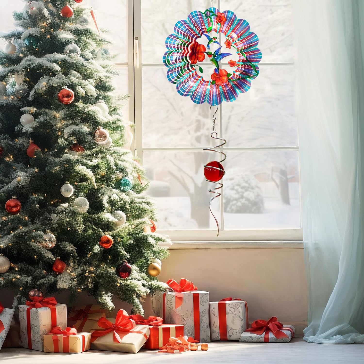- 【New Inspiration for Wind Spinners】This decorative spinner is sure to inspire your decoration ideas. Hummingbird Wind Spinner can also be used as a wall decoration when it is flat, this hummingbird spinner can create a charming and mysterious atmosphere, integrate with any home decoration. And you can find new uses for the Wind Spinner, such as a Christmas ornament by placing it next to Christmas tree lights. This will create a beautiful kaleidoscope effect that may attract Santa Claus!