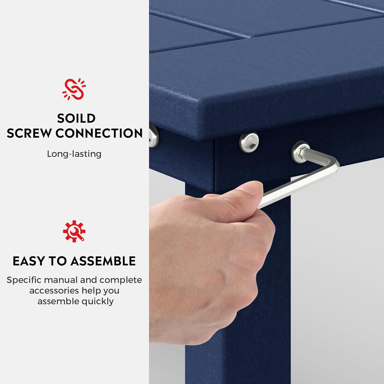 Outdoor Benches Weatherproof, Park Long Bench Poly Lumber Backless for Entryway Front Porch Garden Bench Seat for Patio, Navy Blue