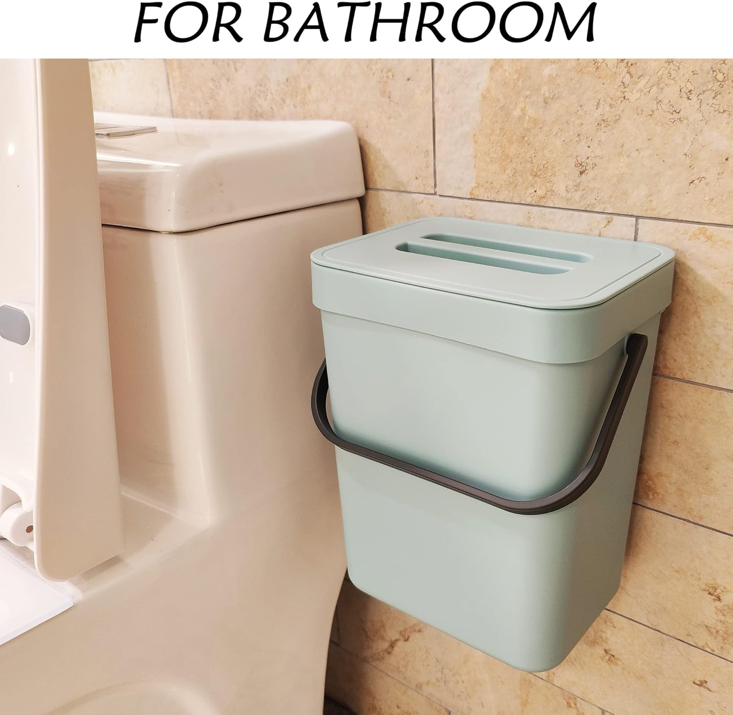 - Two Installation Options : Our kitchen trash bin can easily hang on the cupboard door with mount accessory included.It also can be hung on the wall by adhesive tape.You can use it as an under sink kitchen trash can, a wall-mount trash can, a countertop compost bin.