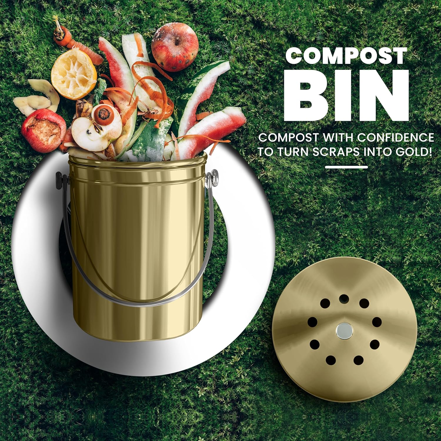 - This compost bin having capacity of 1.3 gallon is manufactured with stainless steel for optimal longevity and durability that won't scratch, crack or chip