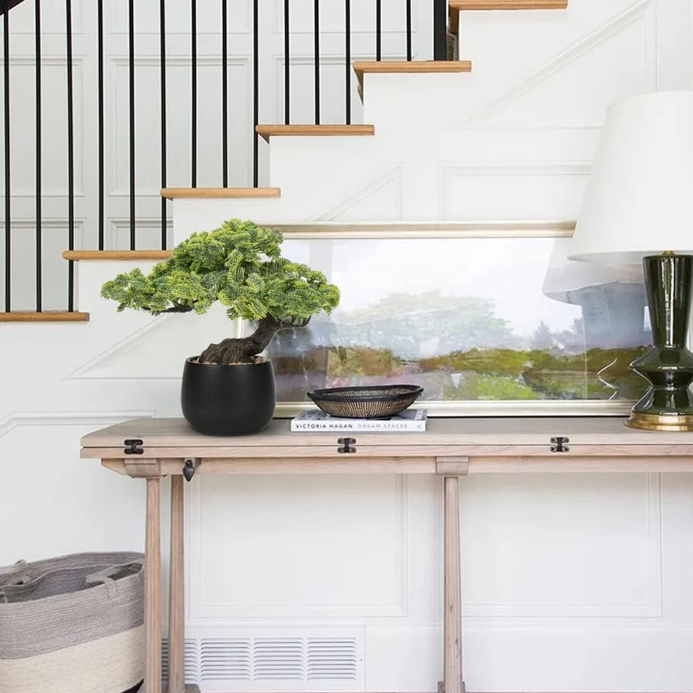 - BONSAI TREE WITH CERAMIC POTS - Artificial potted plants made of high quality PE material, non-toxic, no odor, durable, healthy and environmentally, Vivid color design and high simulation make small fake plant decor very layered and attractive. Mini bonsai tree not only a good home decorations, but also a good gift to your friends. Surprise someone special with one of our most popular artificial pine tree!