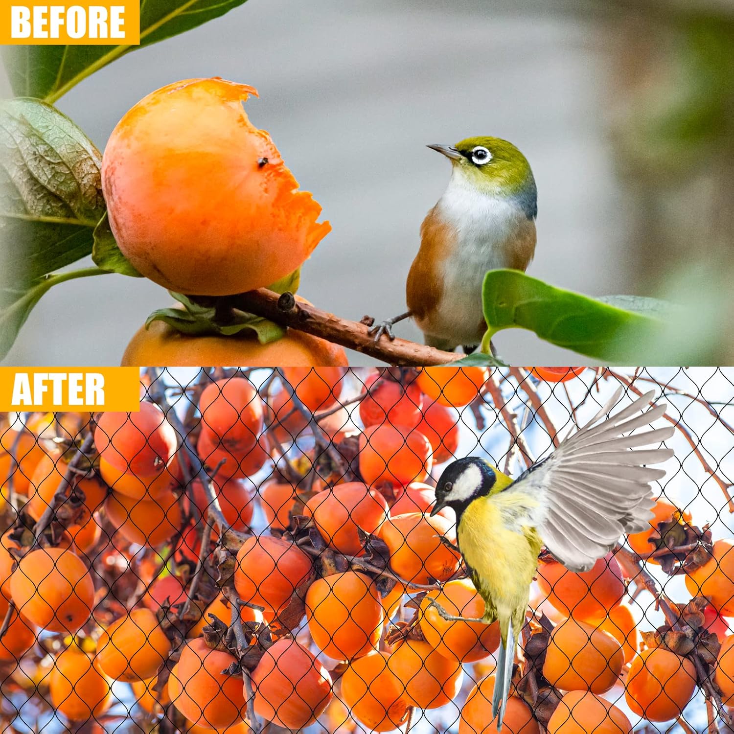 - LONG-LASTING & REUSABLE BIRD NETTING: Bird net is made of out nylon multifilament net which is UV-proof, our lightweight but heavy duty bird nets won't tangle and tear easily, highly sturdy and reusable, stronger than plastic, with anti-cold-heat effect,anti-ultraviolet and rot properties.The UV resistant materials used ensure that the color of the bird net will not fade, allows the bird netting highly robust and that the net will last for years to come.