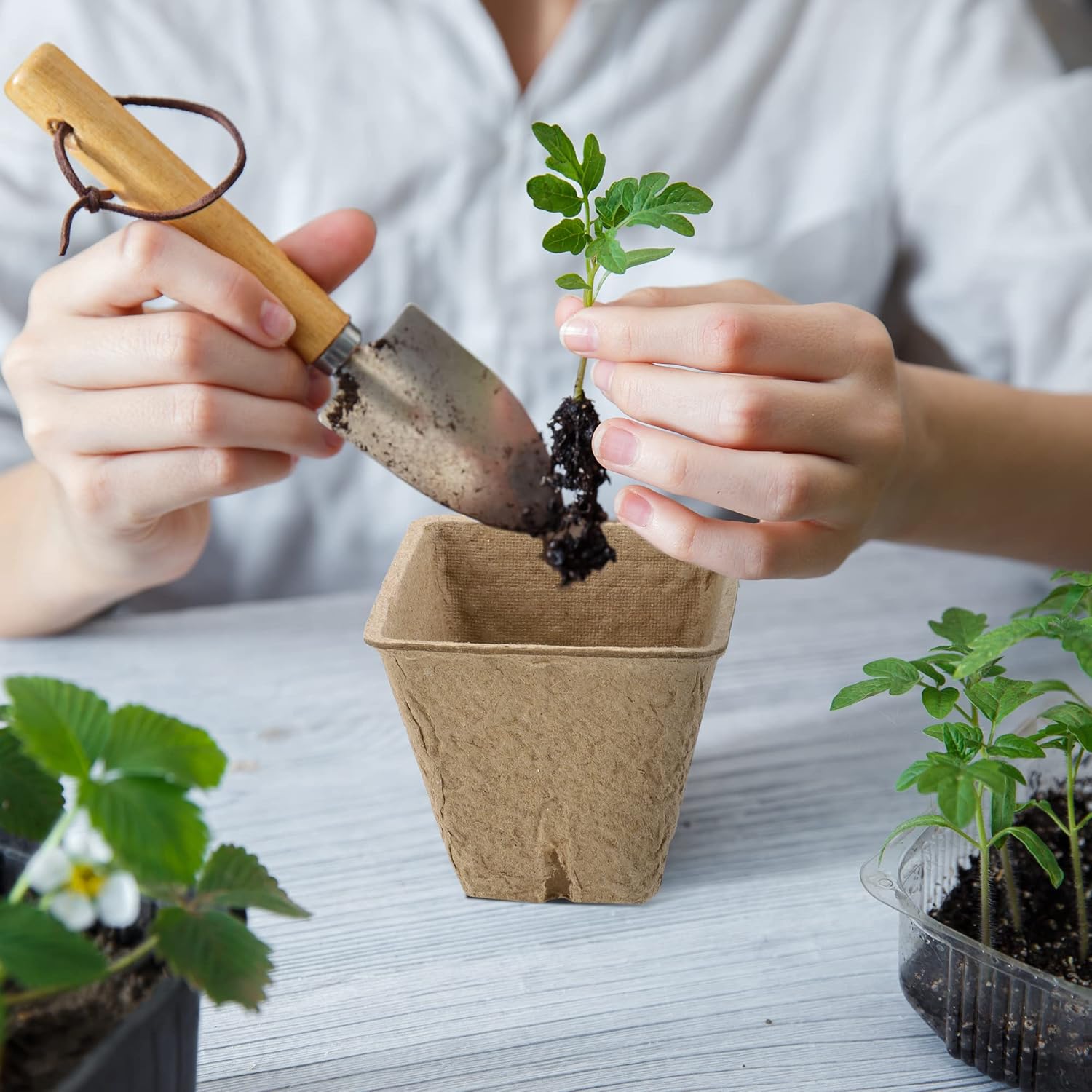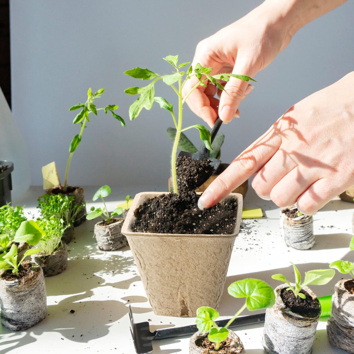 - Square peat pots: the square peat pot plant starters are about 2.3 x 2.3 x 2.2 inches, which is suitable for vegetable, flower, and melon seedlings cultivation; and the plant label size is about 2 x 0.4 inches, suitable for your use