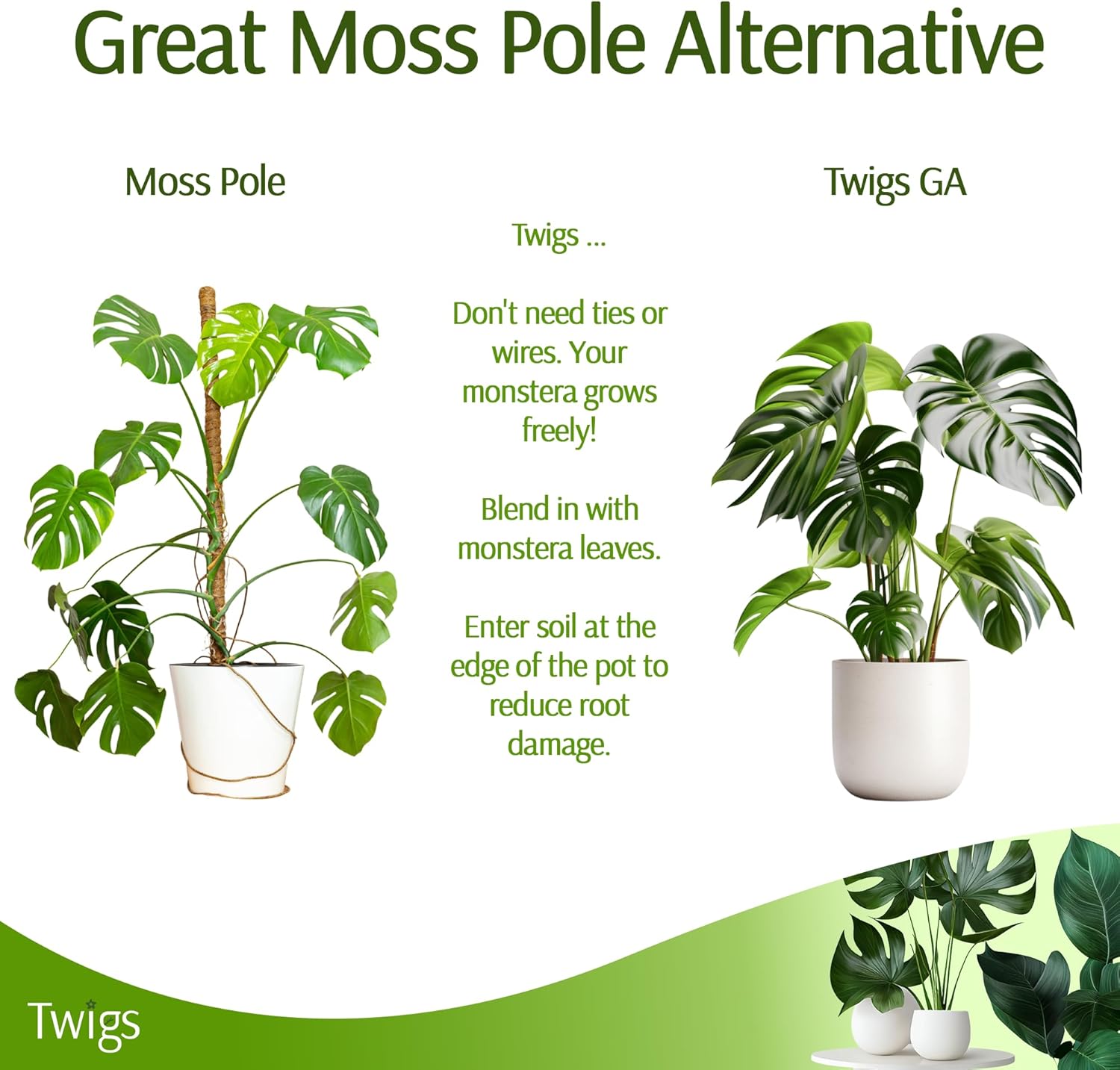 - PROUDLY MADE IN THE USA: Twigs GA Stackable Monstera Plant Support is created by a small business dedicated to elevating your greenery. Replace your monstera moss pole with Twigs GA to maintain your garden's natural beauty.