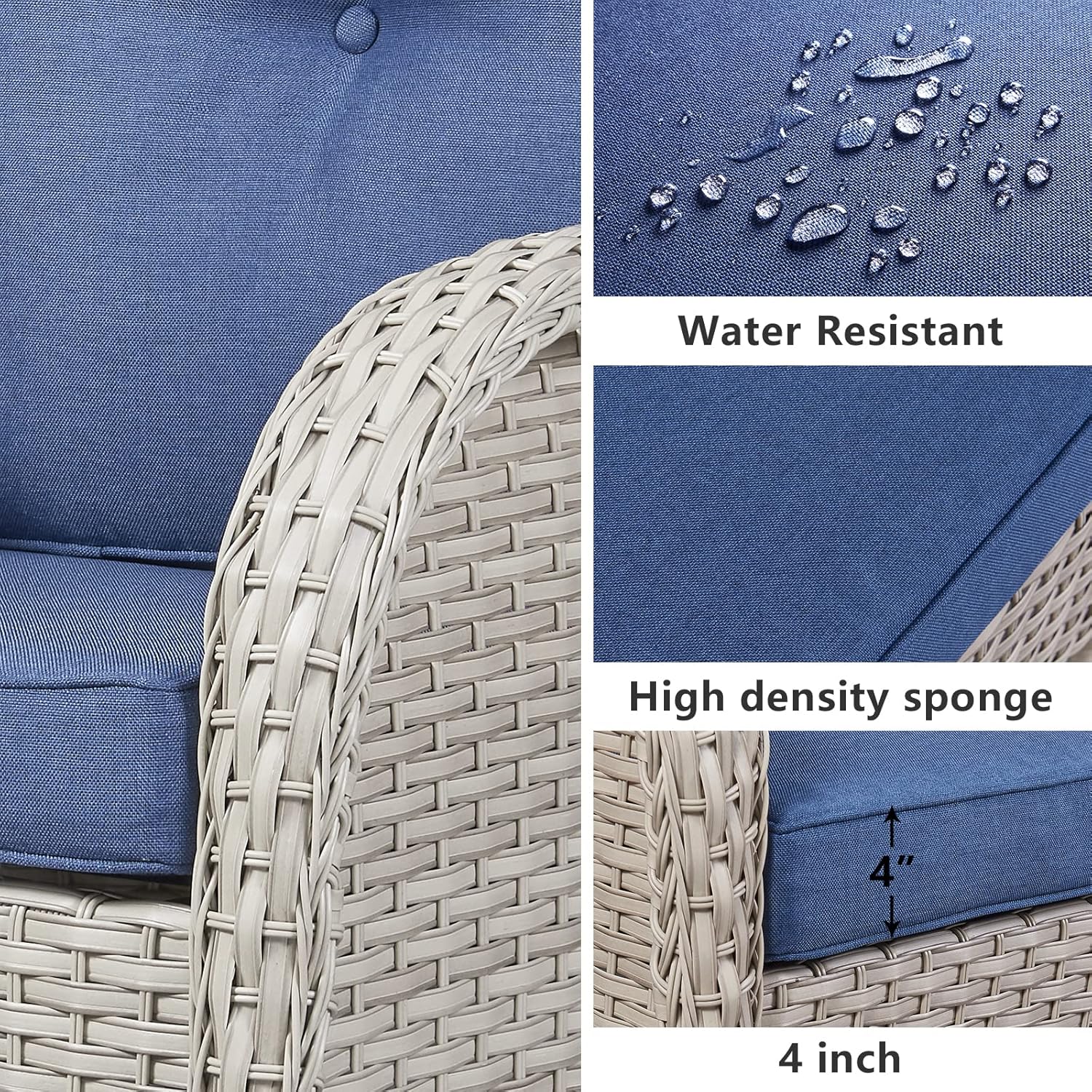 - Ergonomic Design:Added more comfortable support with the ergonomic high backrest and wide armrests design.Deep and wide seats with 4-inch thick sponge-padded cushions.Offers good resilience, not easy to deform or slide,for relaxing lumbar and added comfort and coziness.