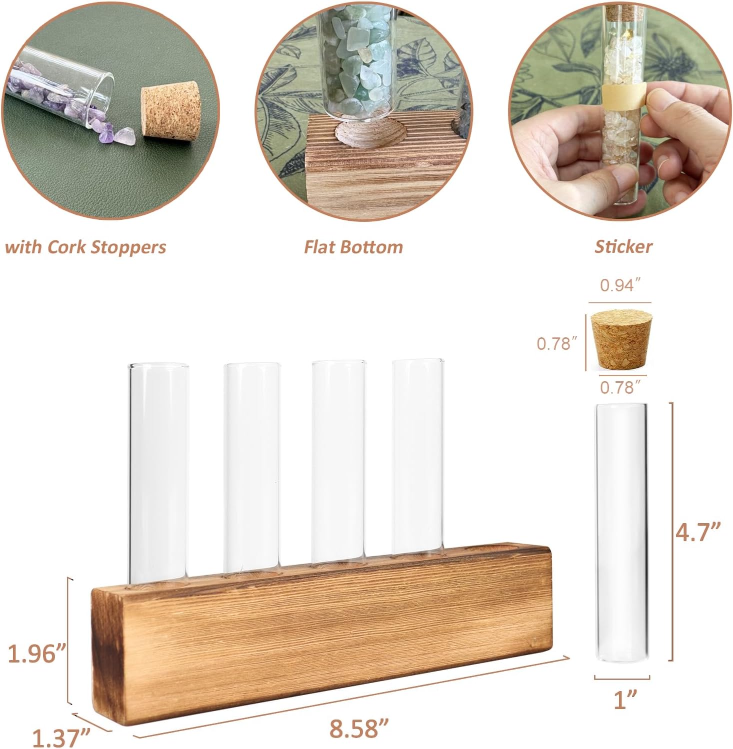 - ✿Decorate Your Home: The transparent test tube is placed on a wooden base, suits for livingroom, ding room, kitchen, office, corridor and window sill, bring the outdoor into your home, warm your life.