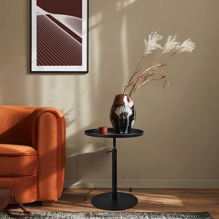 Outdoor Side Table,Tray Metal Sofa End Table, Accent Coffee Table, Adjustable Height, Waterproof and Anti-Rust Outdoor&Indoor Snack Table, Black (Round Top)