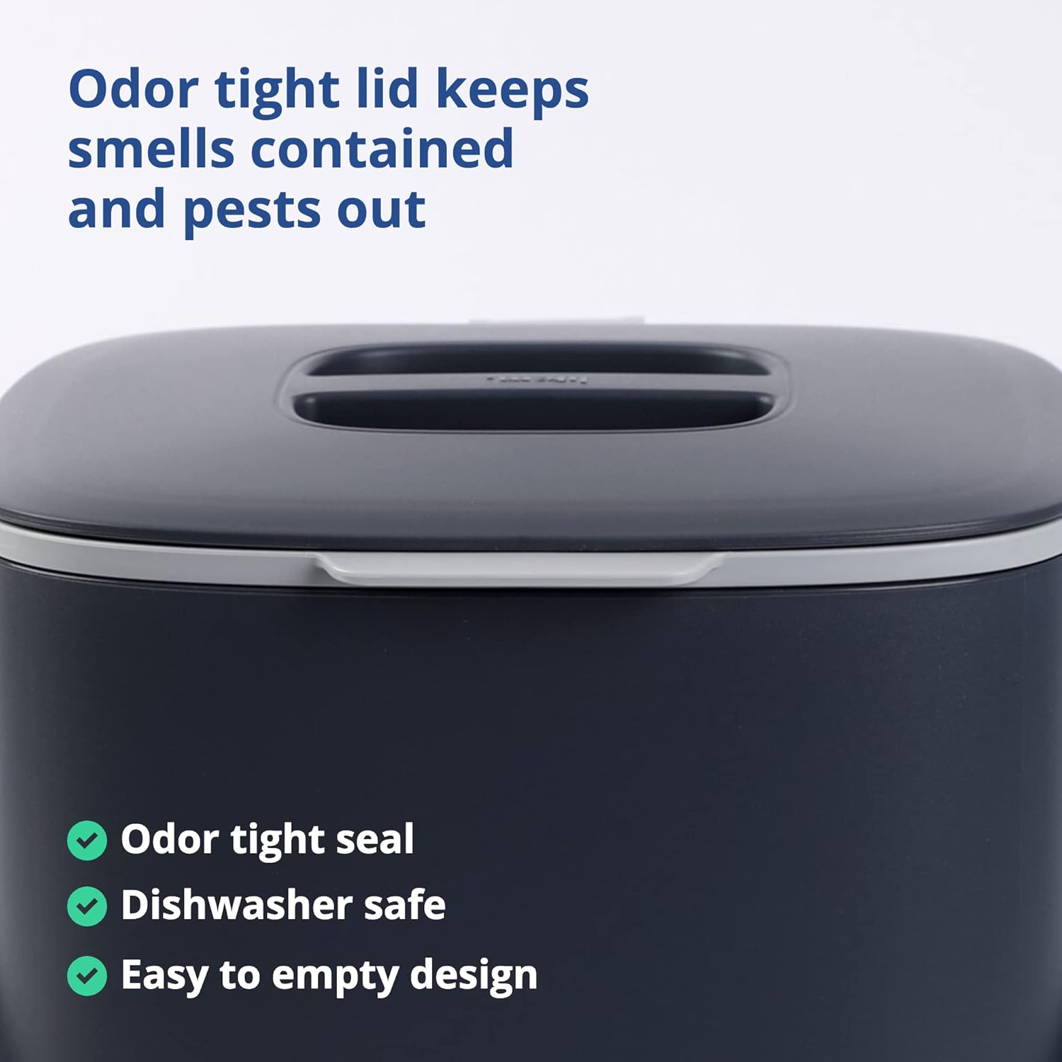 - KEEPS SMELLS CONTAINED - This food waste bin has a modern design that looks great and contains odors without the need of costly charcoal filters.