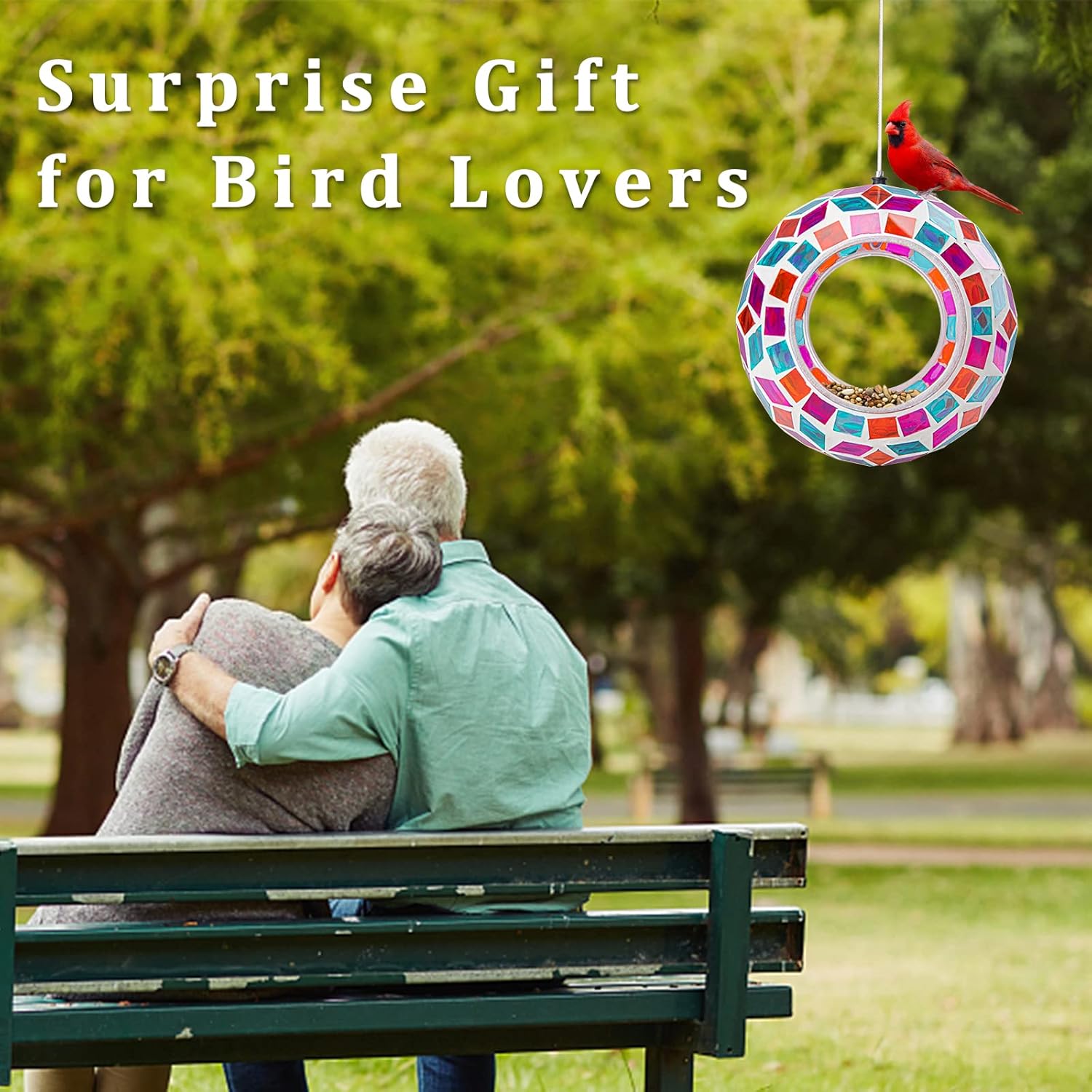 - Hanging Bird Feeder: Mosaic hang bird feeders for outdoors is made of strong mortar and glass. Birds can eat from the rim or hop inside during bad weather