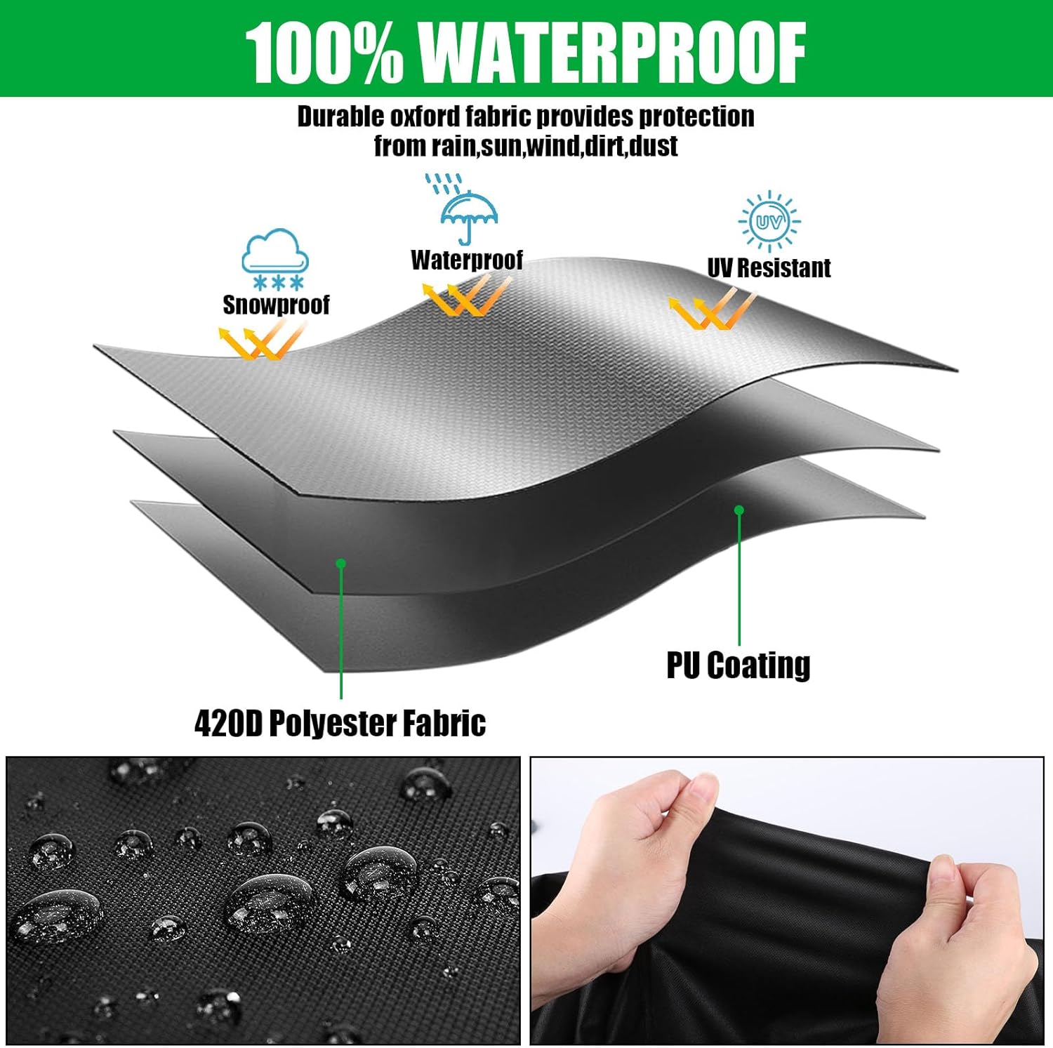 - Premium Materials: The patio furniture cover is made of durable oxford fabric, which is tear-resistant and can well protect your furniture from dust, rain and sun.