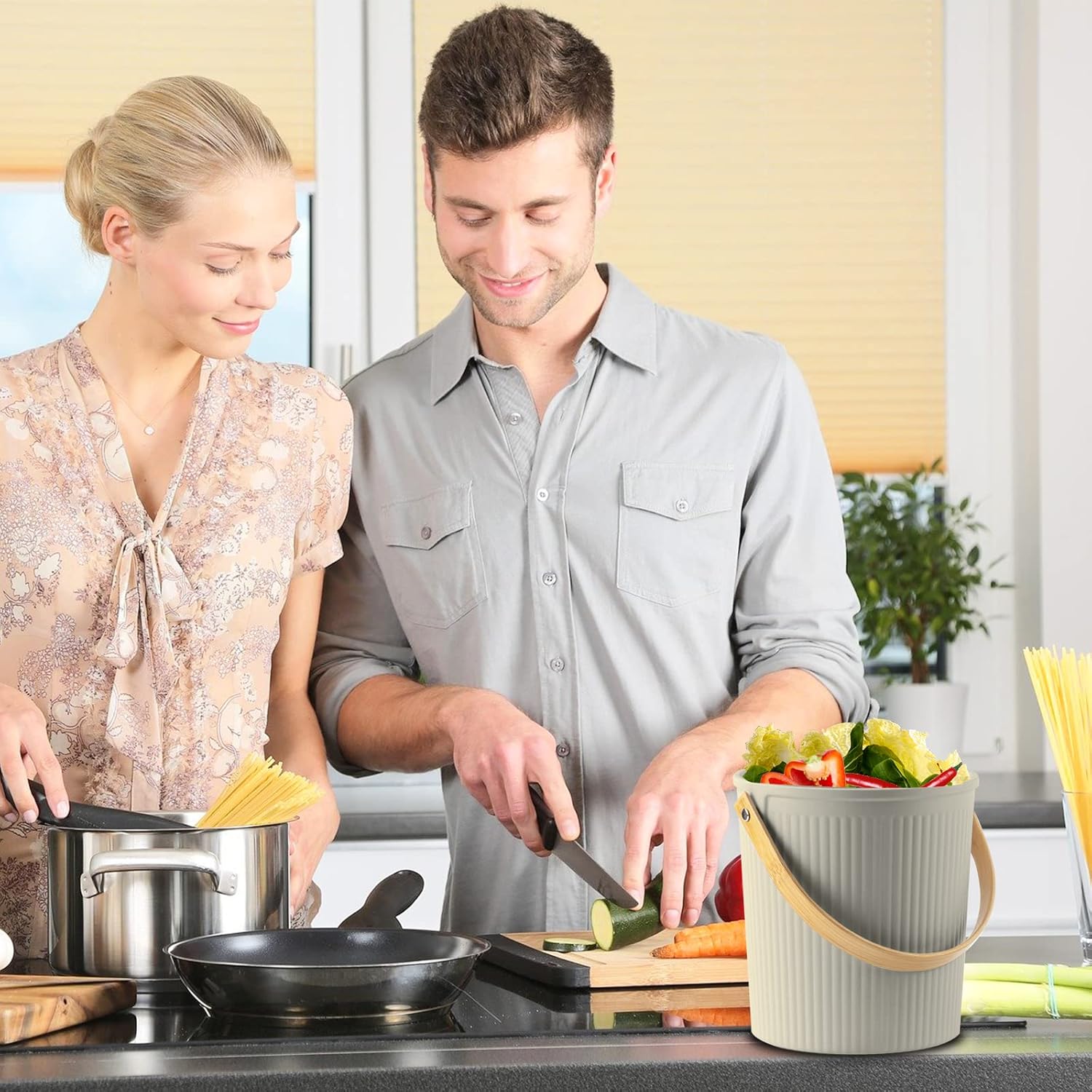 - Stylish: The modern and elegant design of the counter top compost bin for kitchen makes it sit pretty on your countertop to collect peels, ends and other scraps. It's Dishwasher safe.