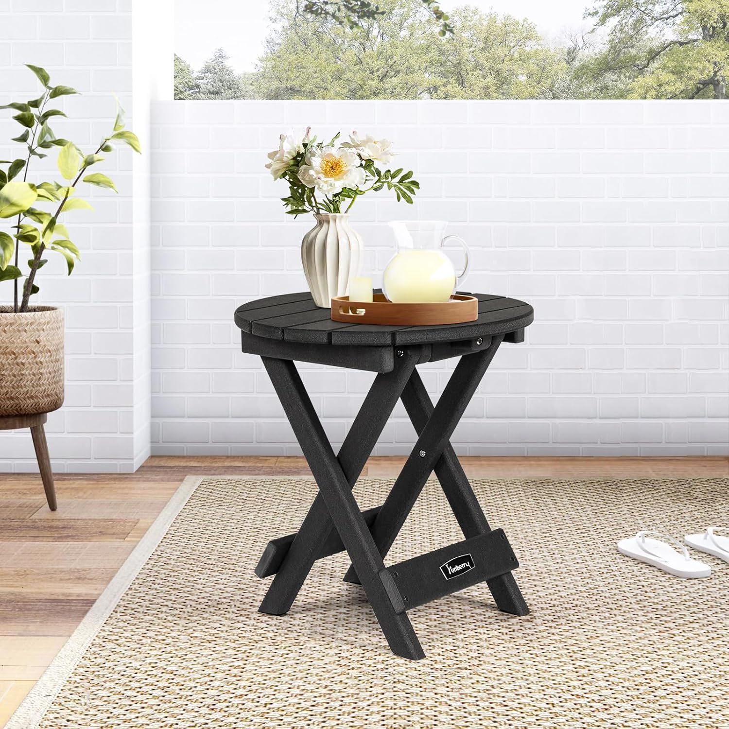 - No Assembly & Safety Lock & Buffer Design: This outdoor side table requires No Assembly, you can simply unfold it for use and quickly fold it flat for storage. This side table has the Safety Lock to prevent it from falling apart when unfolded for use, and a Buffer design for anti-collision in the middle of the table top, its X-shape legs make it very steady even when loading things.