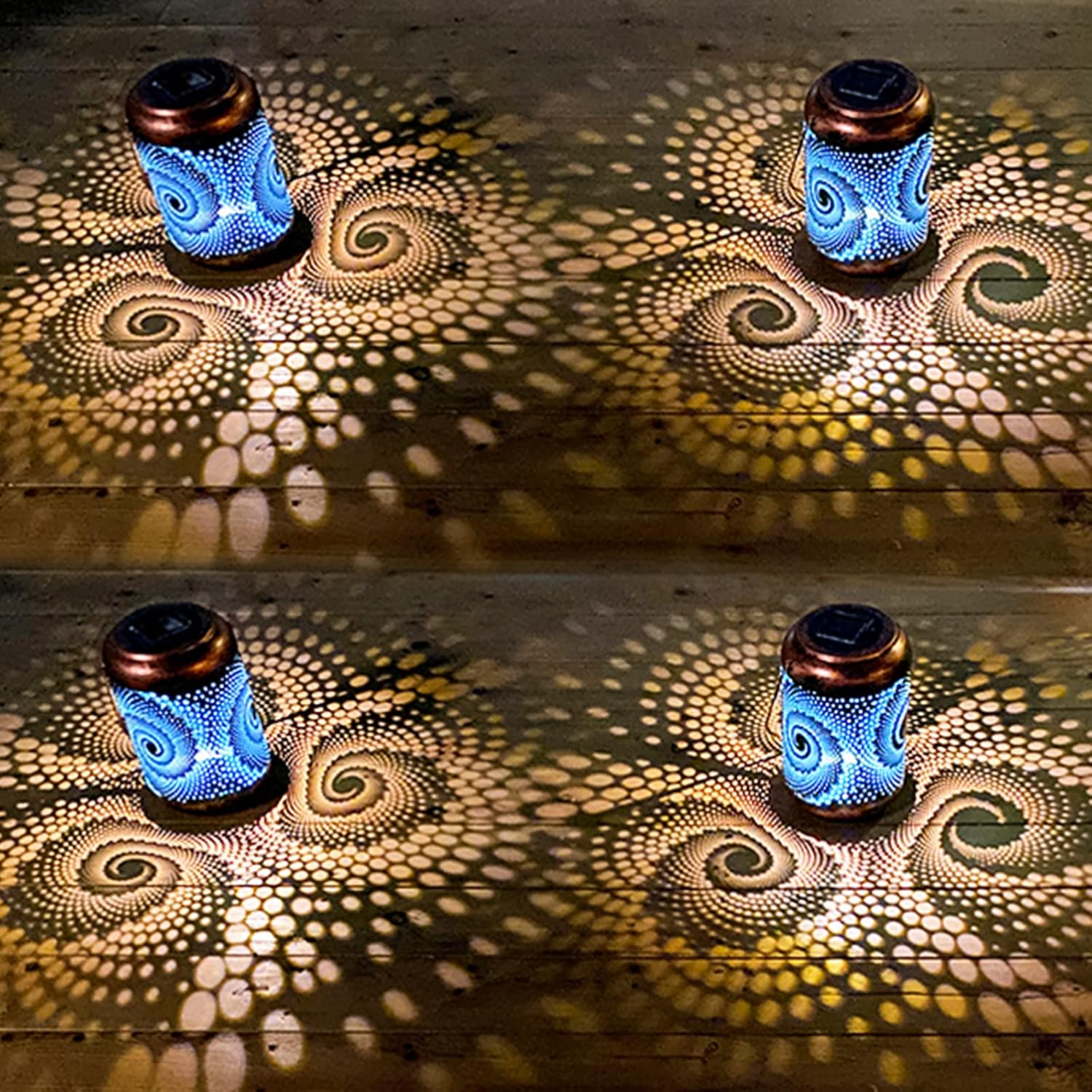 - Gorgeous & Cool Garden Decor: This outdoor lantern has an innovative design that keeps with modern trends. The exterior is pure black with a cool spiral pattern, combined with a cold blue coating inside. In the night, this lantern casting dynamic blue light that is full of technology shadow.