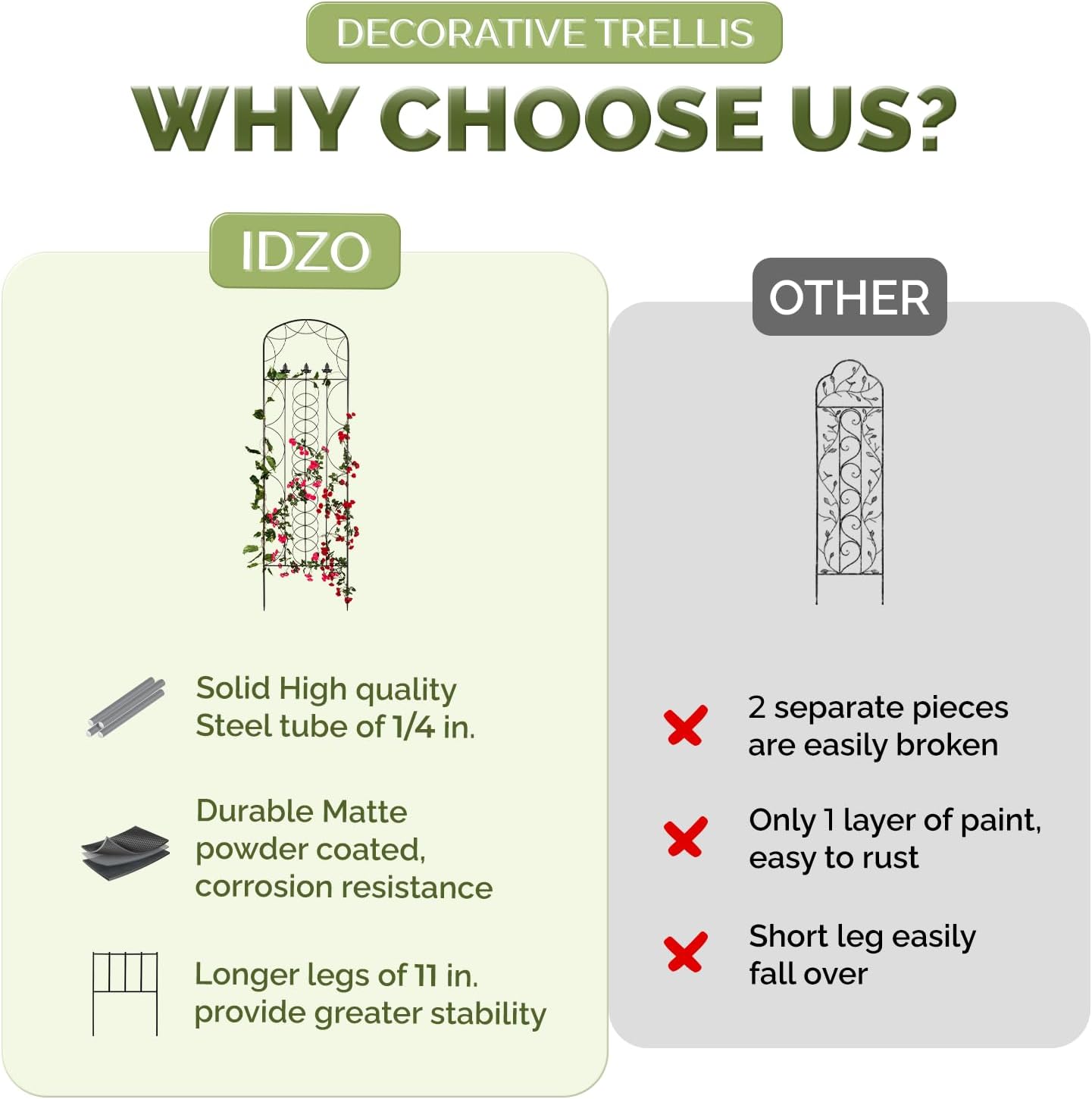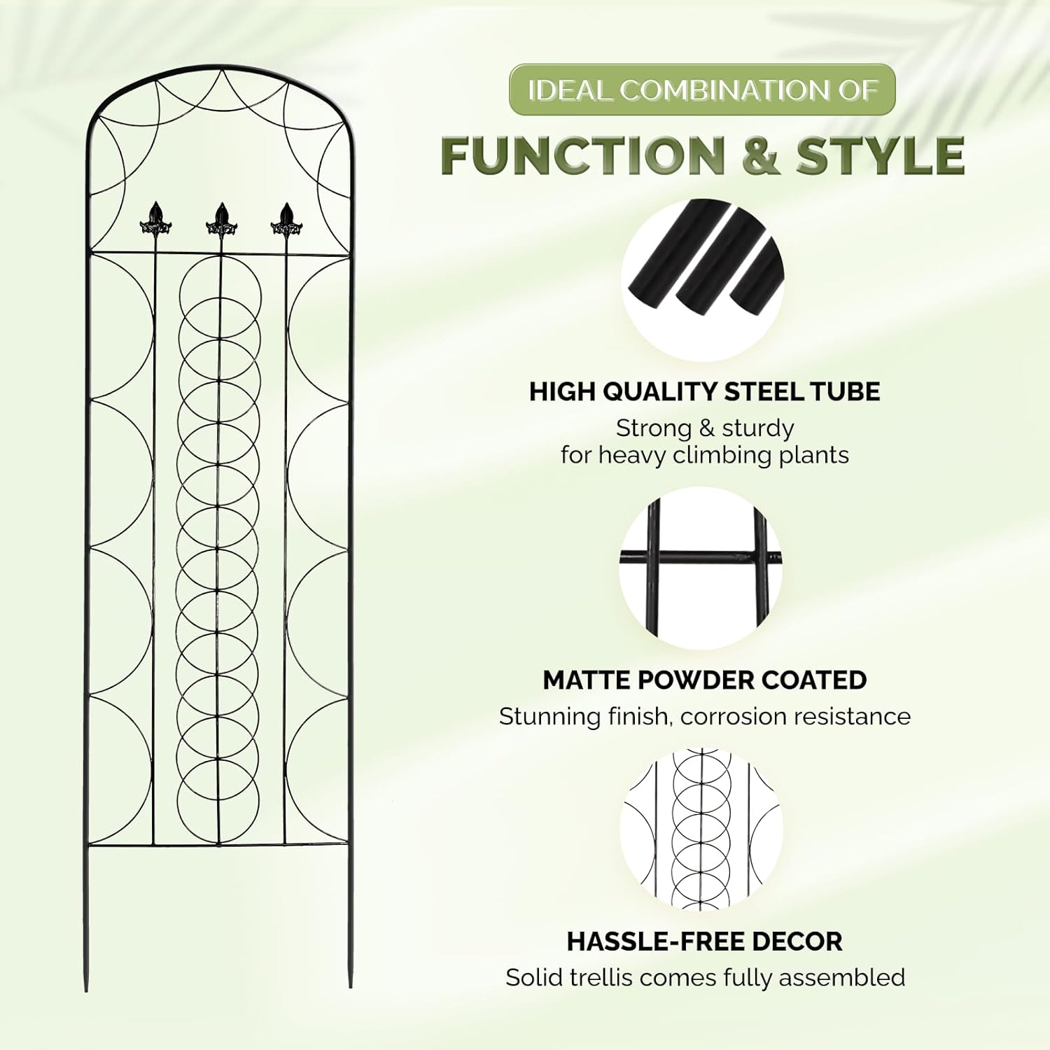 Idzo 71 in. Decorative Metal Trellis for Climbing Plants Outdoor, Heavy-Duty Steel Garden Trellis with Durable Powder Coating, Black
