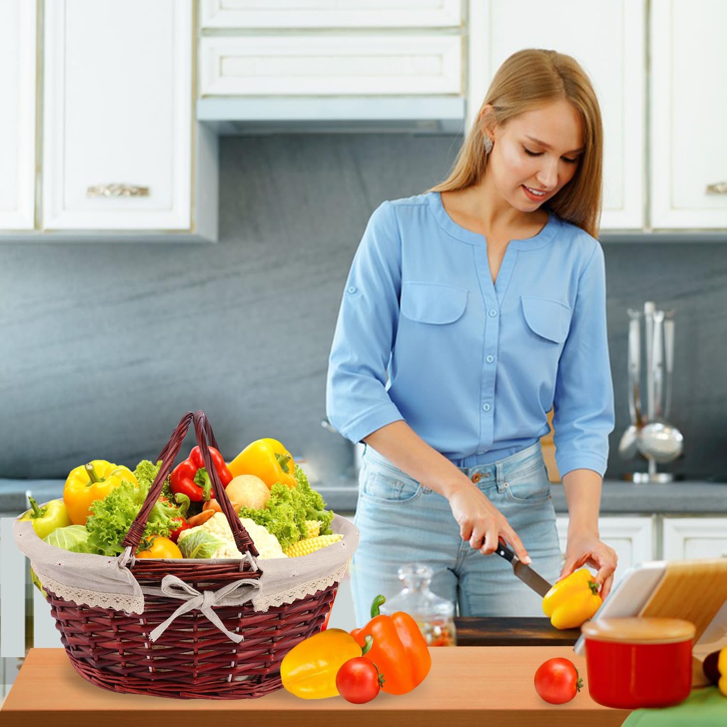 - 【Removable Linings】 The Wicker Picnic Basket come with liner cloths that can be removed and washed, keeping the baskets clean and protecting the items inside. The basket is also great for carrying fruits, vegetables, and flowers from the garden.