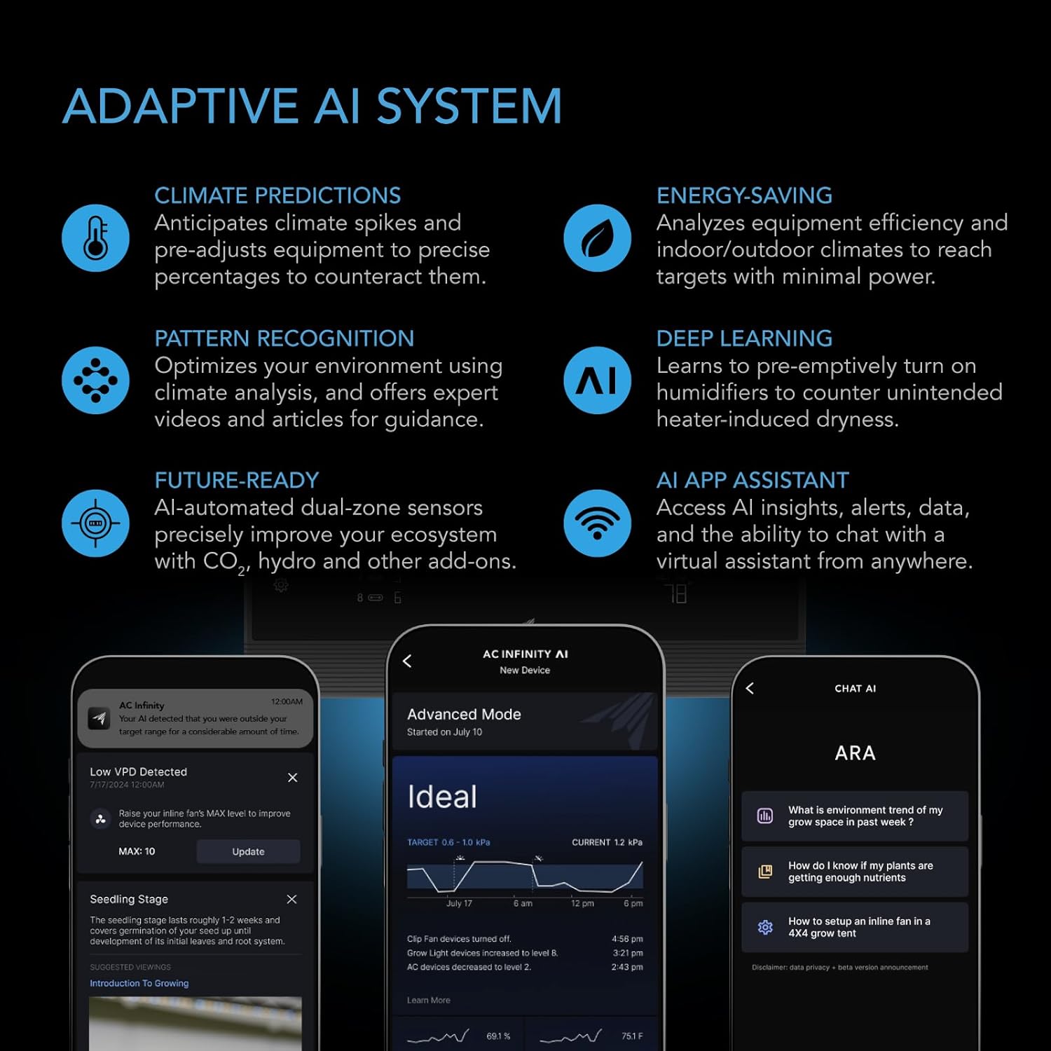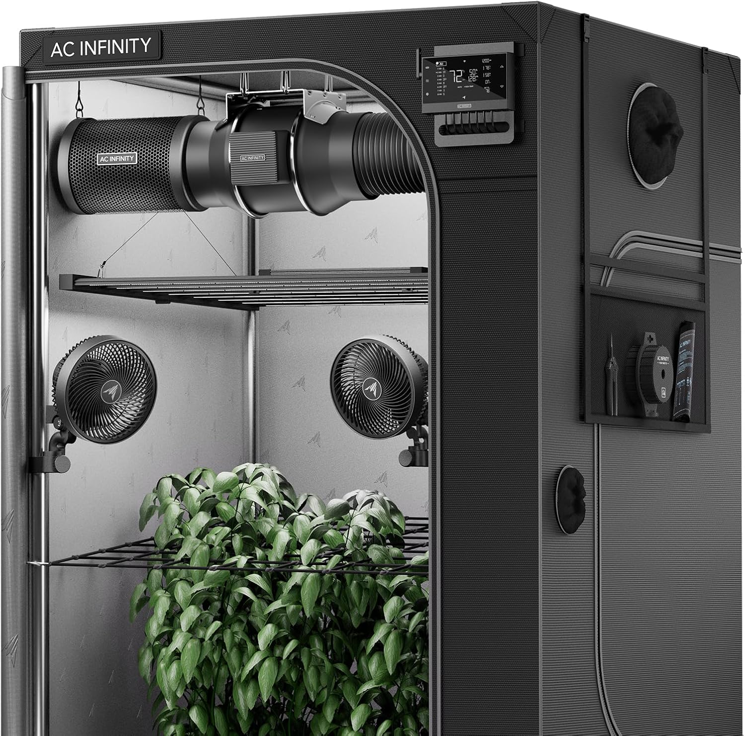 - An advanced AI grow tent kit with dynamic controls and built-in components; everything you need to achieve the perfect grow—all housed in a state-of-the-art tent.