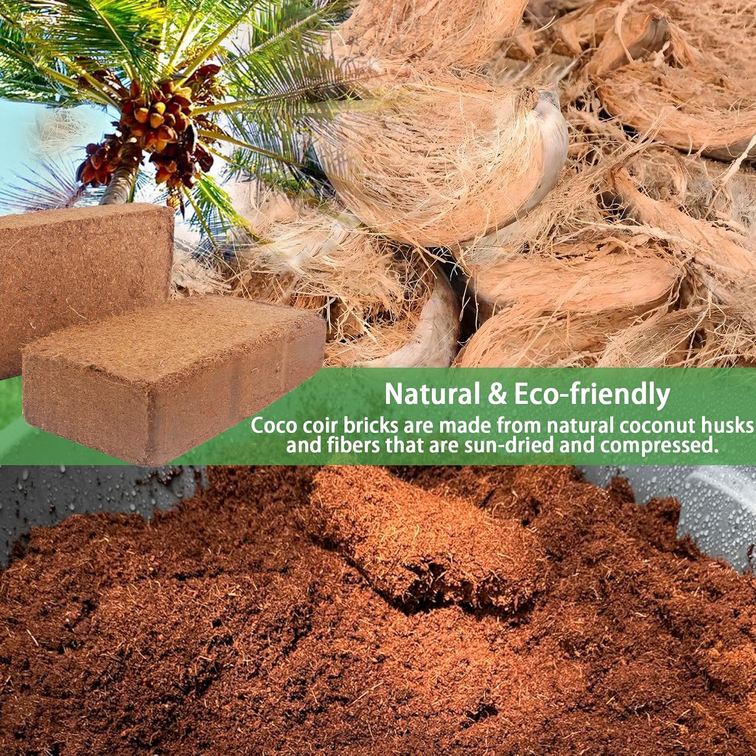 - 100% NATURAL ORGANIC - Our coco coir bricks come from natural coconut shell fibers, which are environmentally friendly organic matter that can be absorbed and decomposed by plants and become nutrients for plant growth