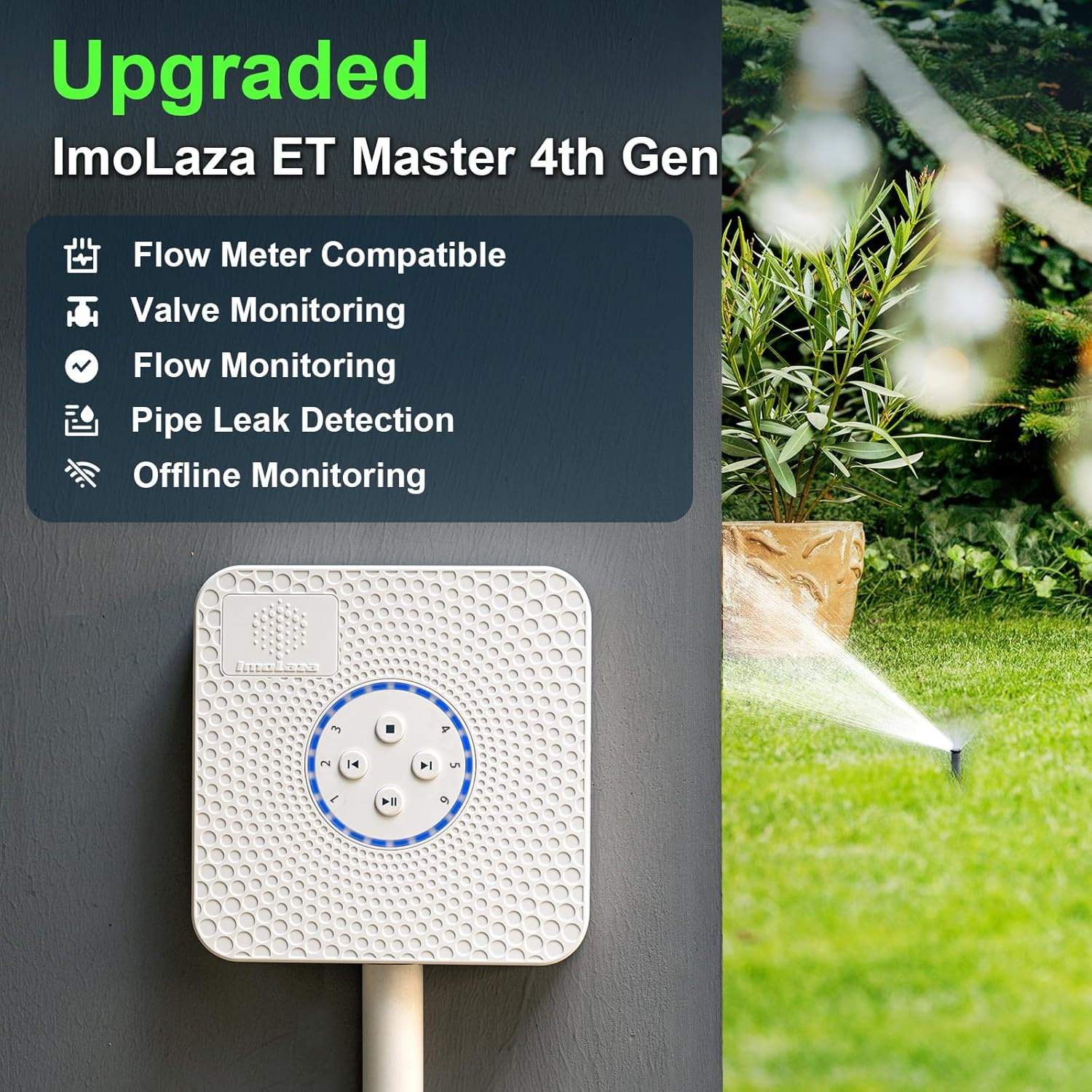 - UPGRADED IMOLAZA ET MASTER 4: Building upon the ET Master 3's features and sleek design, the upgraded Gen 4 includes compatibility with flow meters, fault detection capabilities, real-time fault alerts, and terminal enhancements. This ensures an optimized irrigation process, saving water while maintaining the health of your lawn