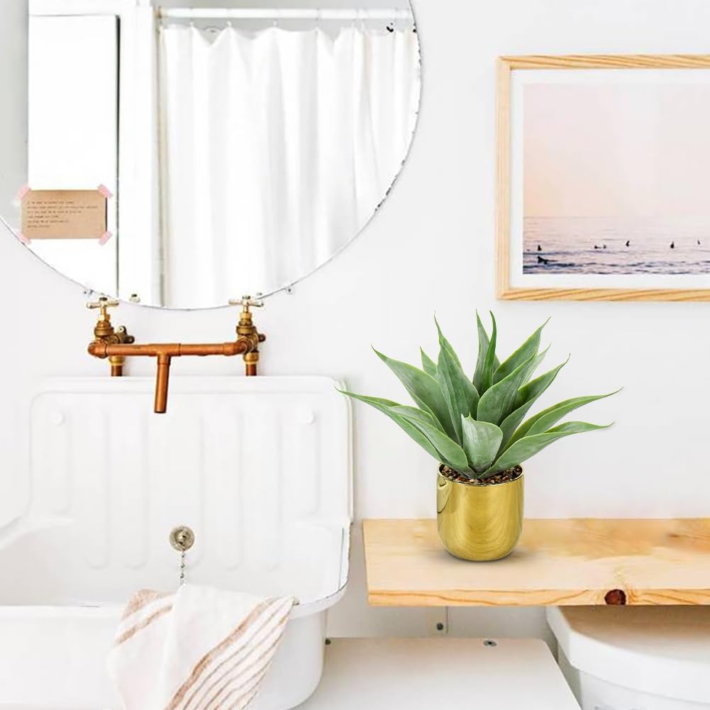 Large Faux Agave Plant 13" Artificial Aloe Vera Plants Fake Succulent Plants in Pot Realistic Agave Plant Artificial Potted Plants for Home Living Room Table Office Desk Bathroom Indoor Decor(Gold)