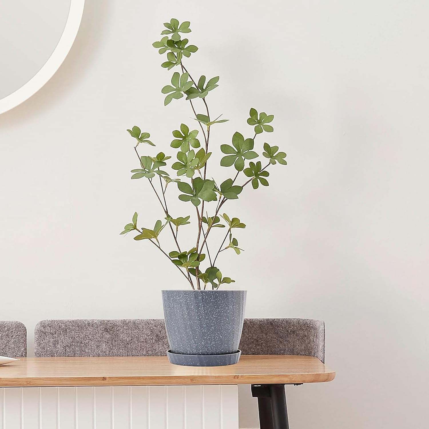 6 Inch Plant Pots Bulk, 6 Pack Plastic Planters with Drainage Holes and Saucers for Indoor Outdoor House Plants and Flowers, Grey Spots
