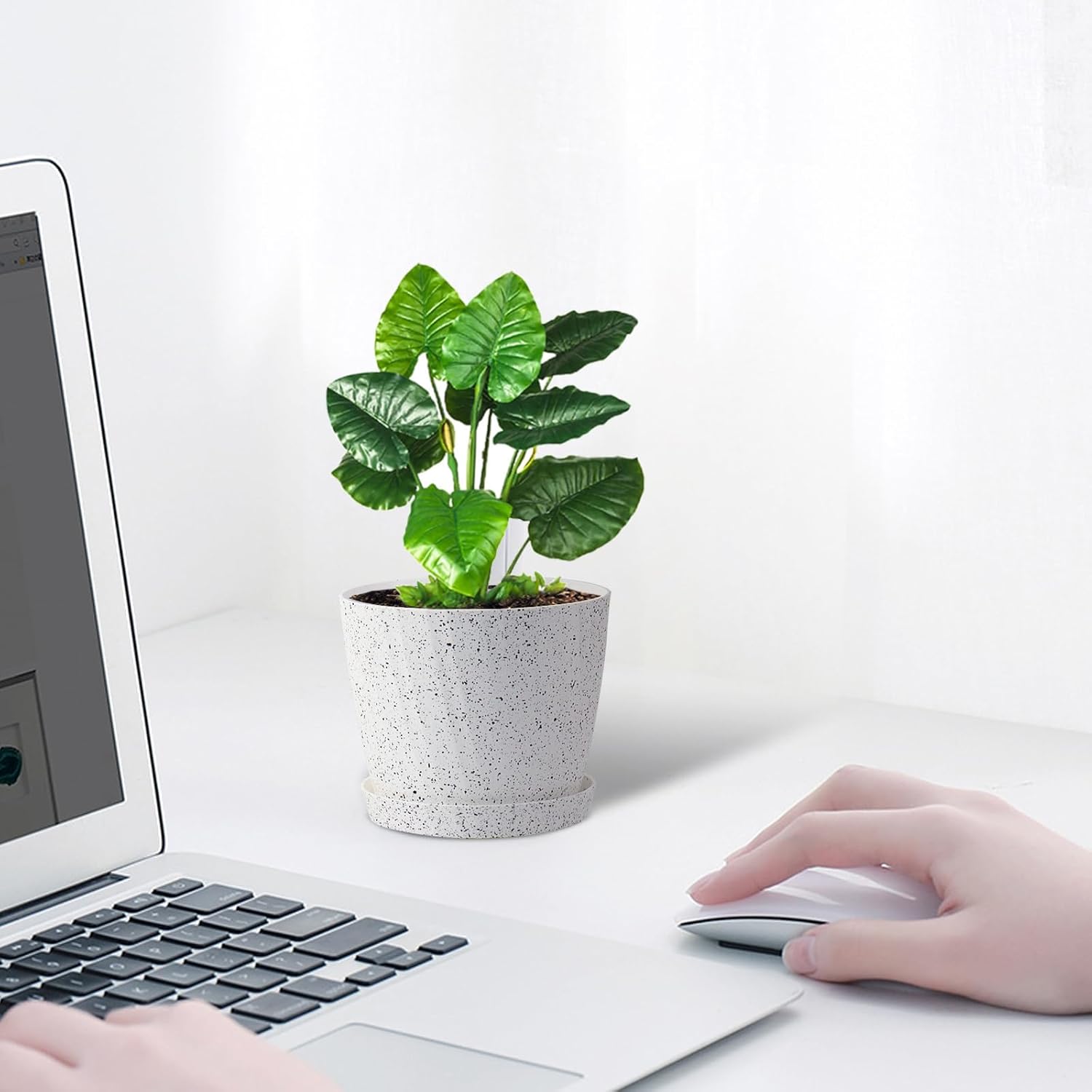 - DECORATION YOUR HOME GARDEN - 6 pack 6 inch planters with colorful speckles, transplant plants to these pots, fill up with mix soil, water and let drain, then place a saucer under each plant. Brings a new stylish home garden. Pefect for hanging up or placed on windowsill, shelf, bedroom, kitchen, office, desktop, garden, etc.